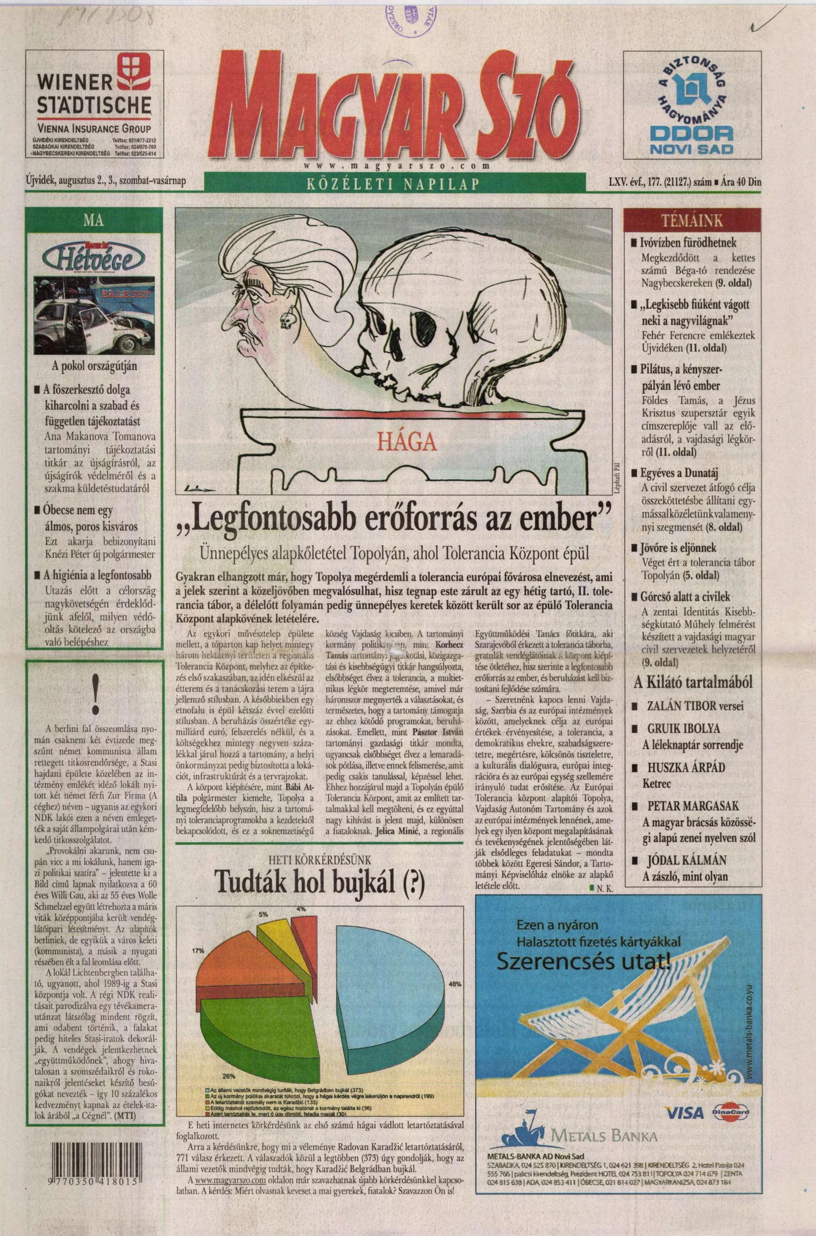 Magyar Szó, 65. évf. 2008. augusztus 2. – 3. 177. sz. 1–28. oldal