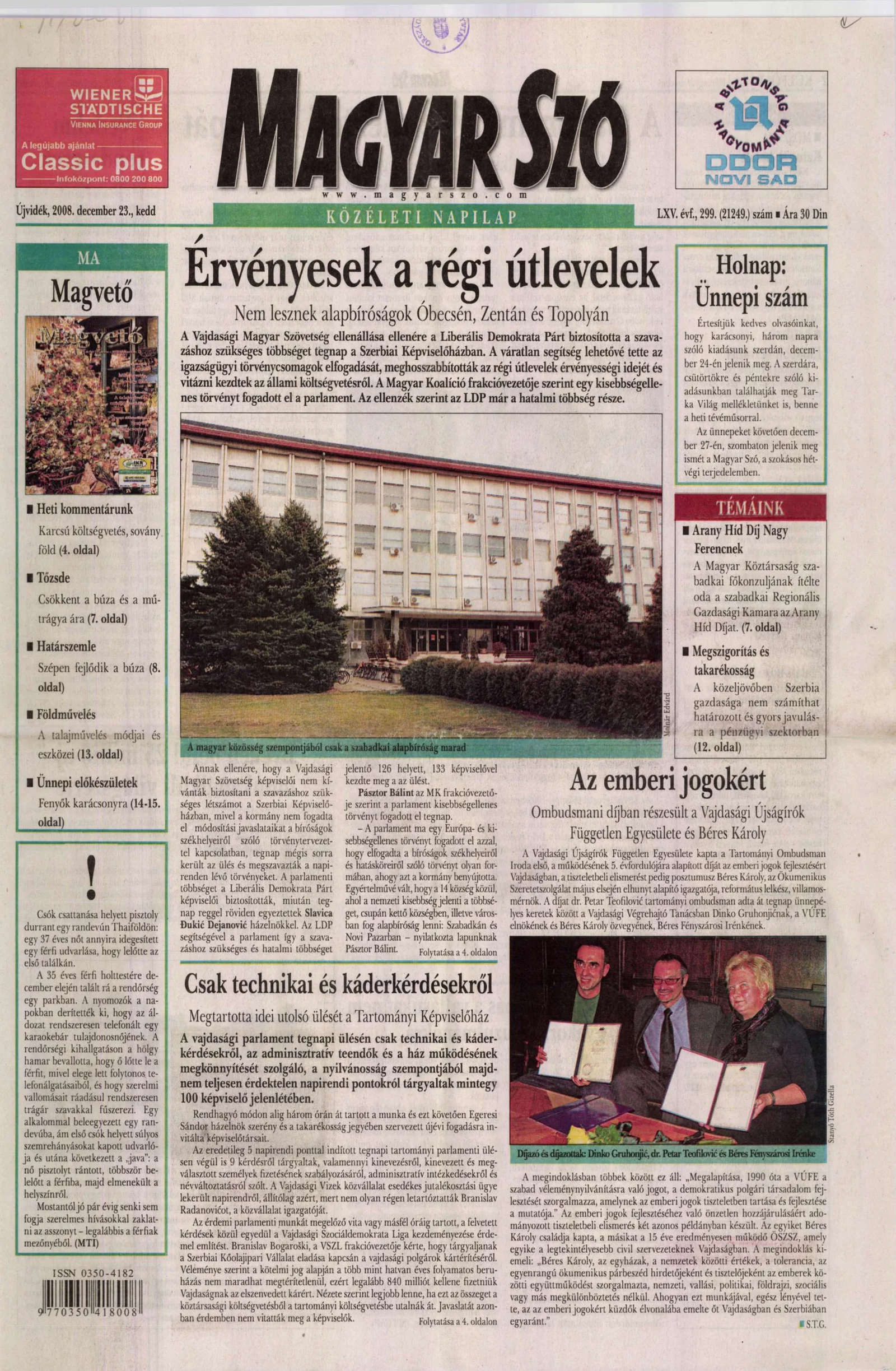 Magyar Szó, 65. évf. 2008. december 23. 299. sz. 1–20. oldal