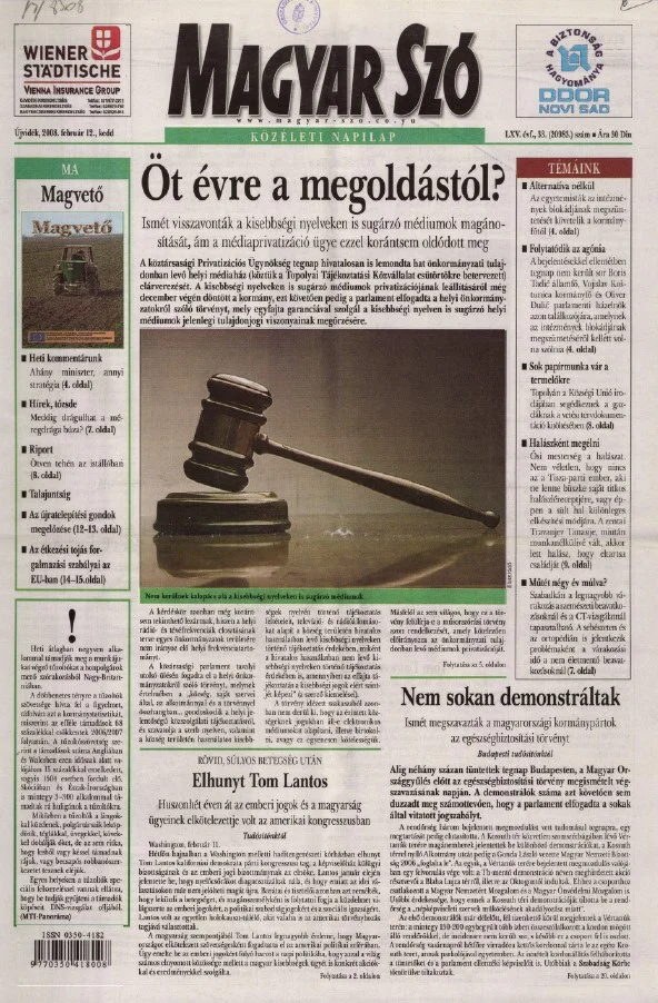 Magyar Szó, 65. évf. 2008. február 12. 33. sz. 1–20. oldal