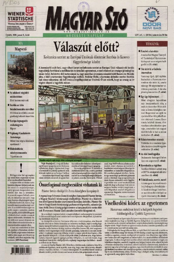 Magyar Szó, 65. évf. 2008. január 8. 4. sz. 1–20. oldal