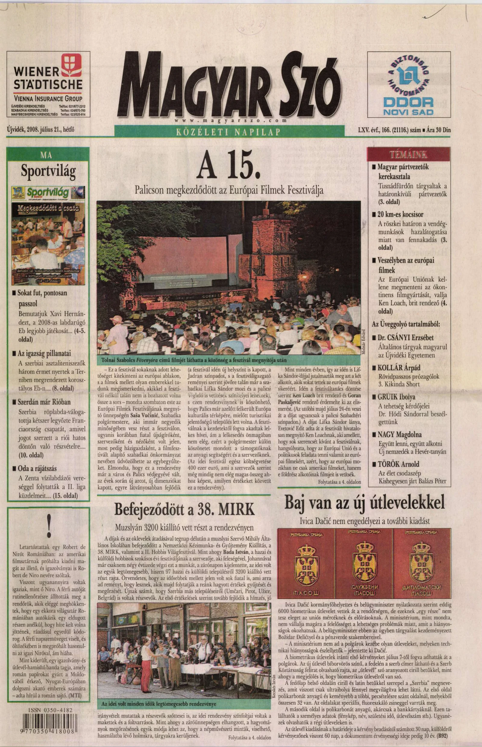 Magyar Szó, 65. évf. 2008. július 21. 166. sz. 1–16. oldal
