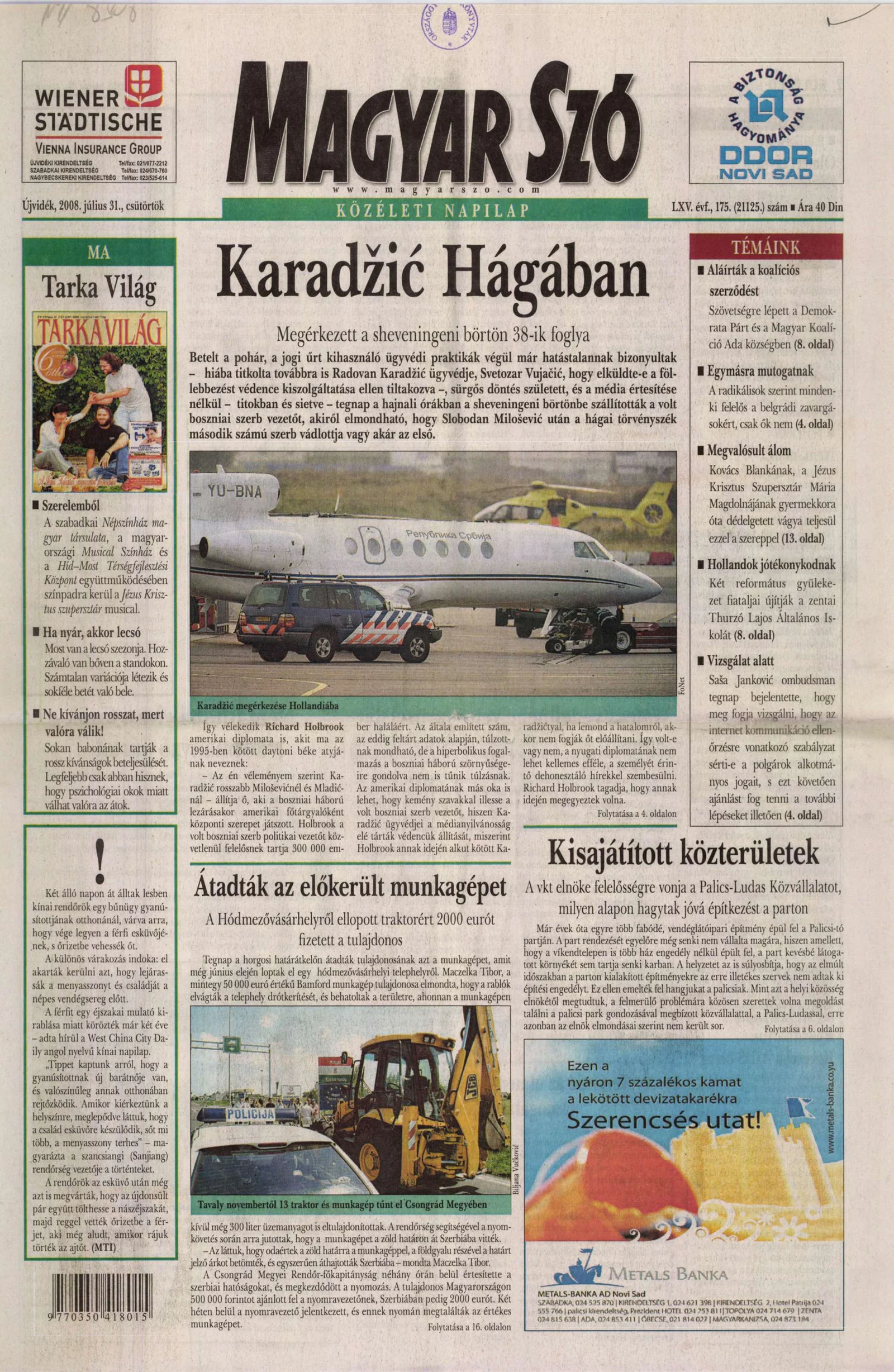 Magyar Szó, 65. évf. 2008. július 31. 175. sz. 1–16. oldal