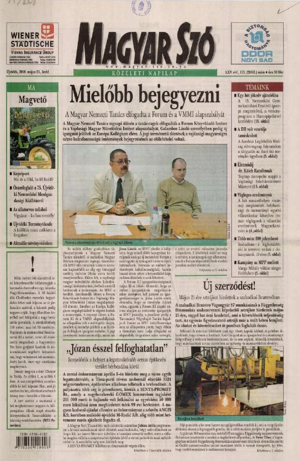 Magyar Szó, 65. évf. 2008. május 20. 113. sz. 1–20. oldal