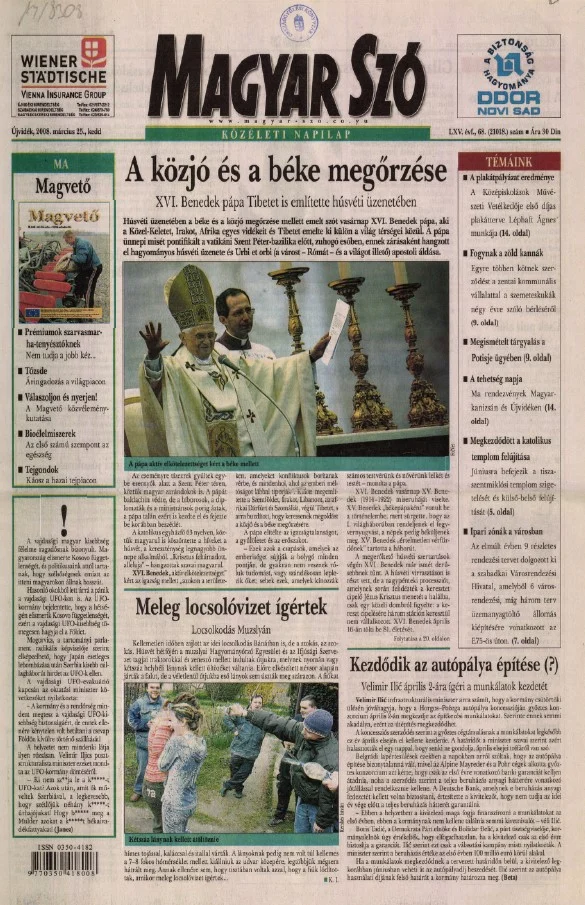 Magyar Szó, 65. évf. 2008. március 25. 68. sz. 1–12. oldal