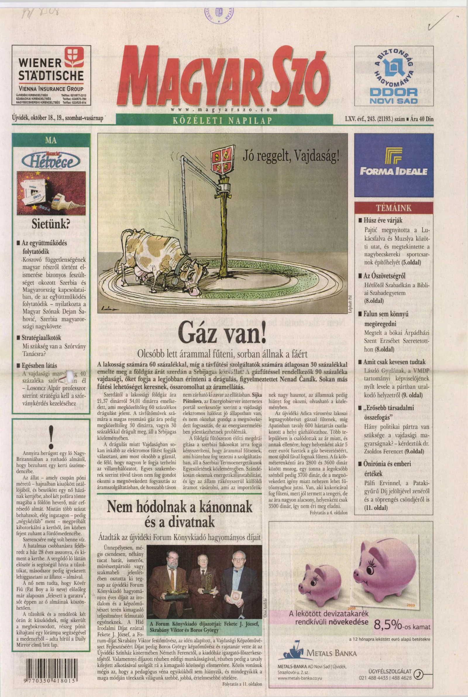 Magyar Szó, 65. évf. 2008. október 18. – 19. 243. sz. 1–28. oldal