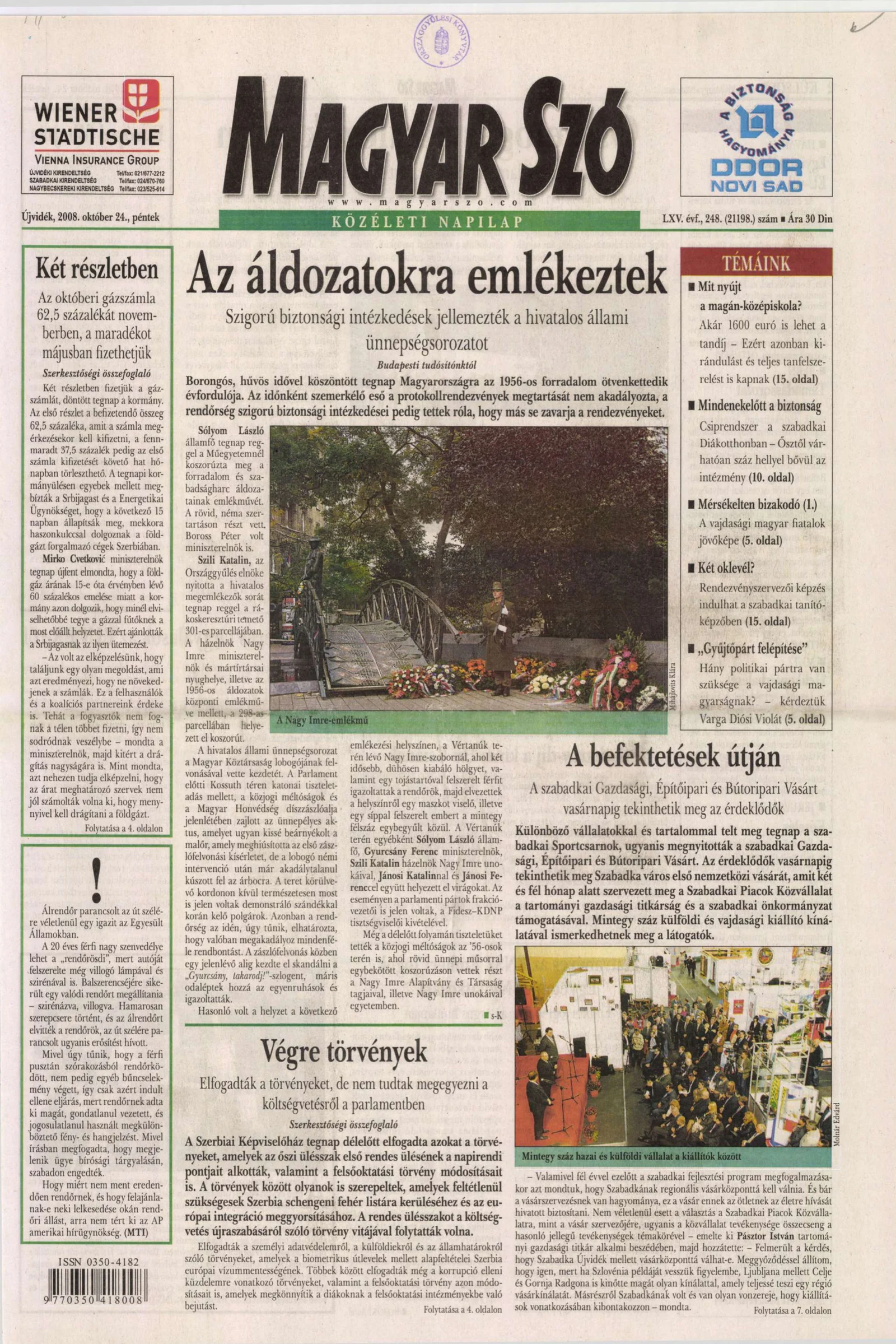 Magyar Szó, 65. évf. 2008. október 24. 248. sz. 1–20. oldal