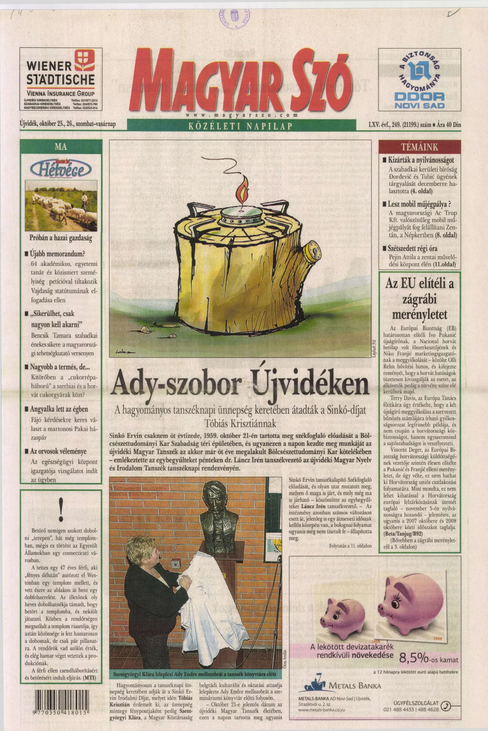 Magyar Szó, 65. évf. 2008. október 25. – 26. 249. sz. 1–28. oldal