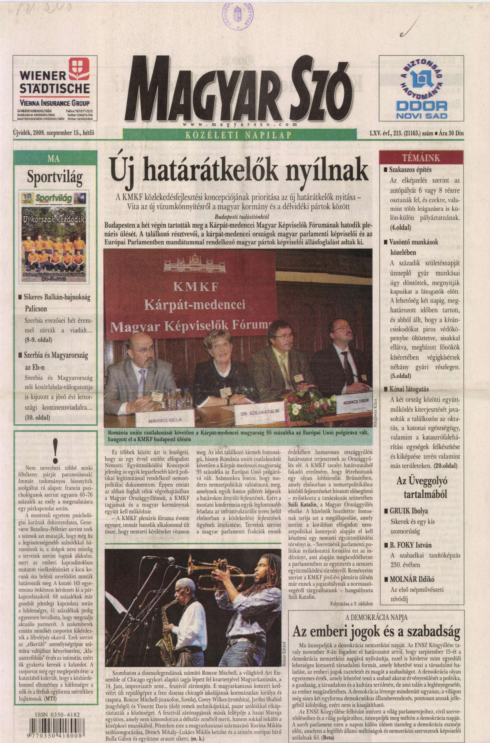 Magyar Szó, 65. évf. 2008. szeptember 15. 213. sz. 1–16. oldal
