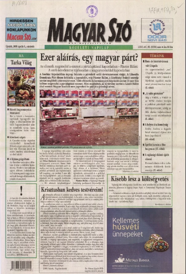Magyar Szó, 66. évf. 2009. április 9. 82. sz. 1–20. oldal