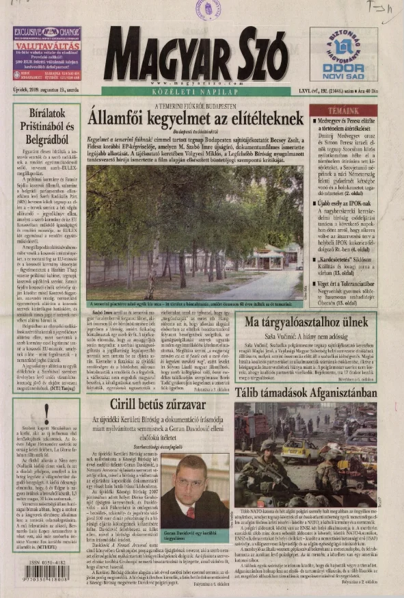 Magyar Szó, 66. évf. 2009. augusztus 19. 192. sz. 1–16. oldal