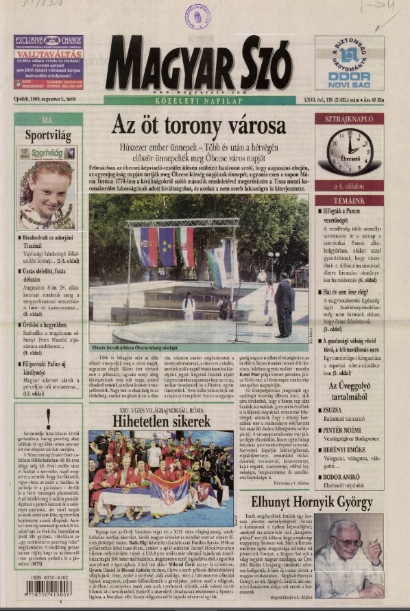 Magyar Szó, 66. évf. 2009. augusztus 3. 178. sz. 1–16. oldal