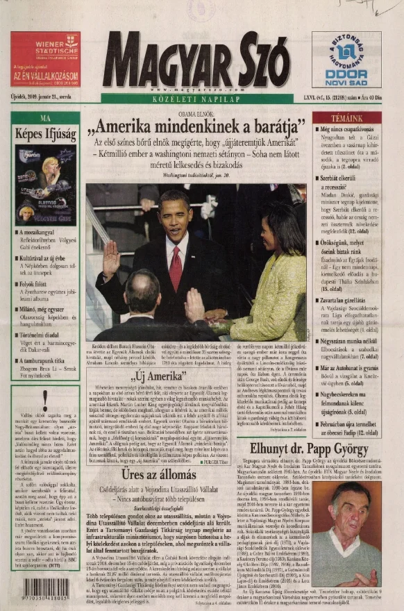Magyar Szó, 66. évf. 2009. január 21. 15. sz. 1–20. oldal