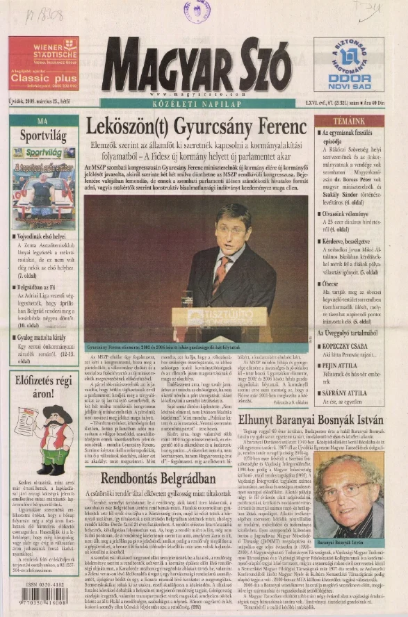 Magyar Szó, 66. évf. 2009. március 23. 67. sz. 1–16. oldal