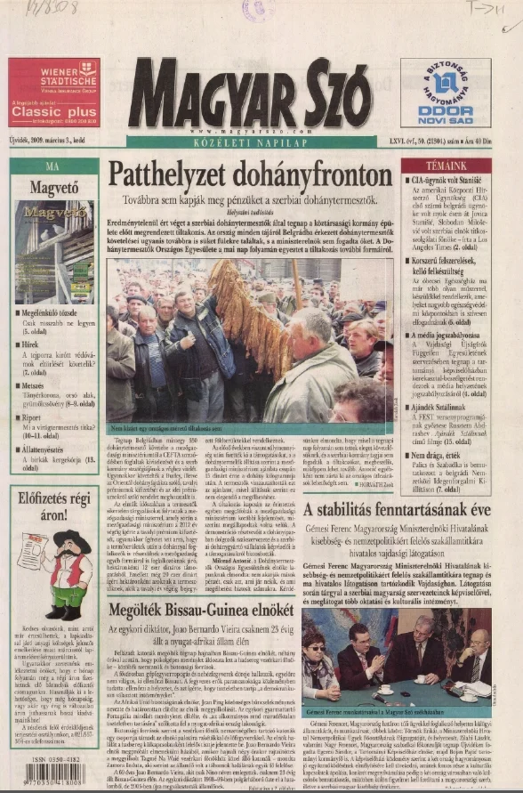 Magyar Szó, 66. évf. 2009. március 3. 50. sz. 1–20. oldal