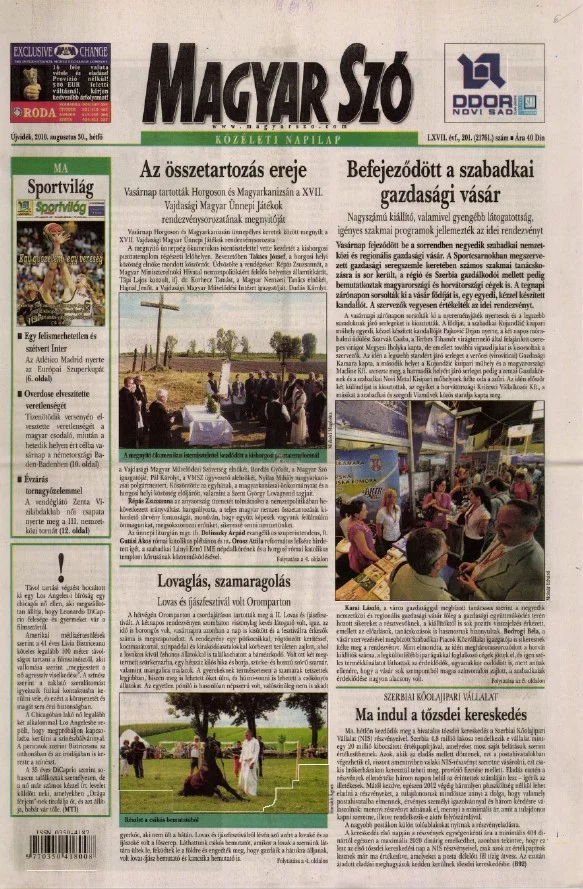 Magyar Szó, 67. évf. 2010. augusztus 30. 201. sz. 1–16. oldal