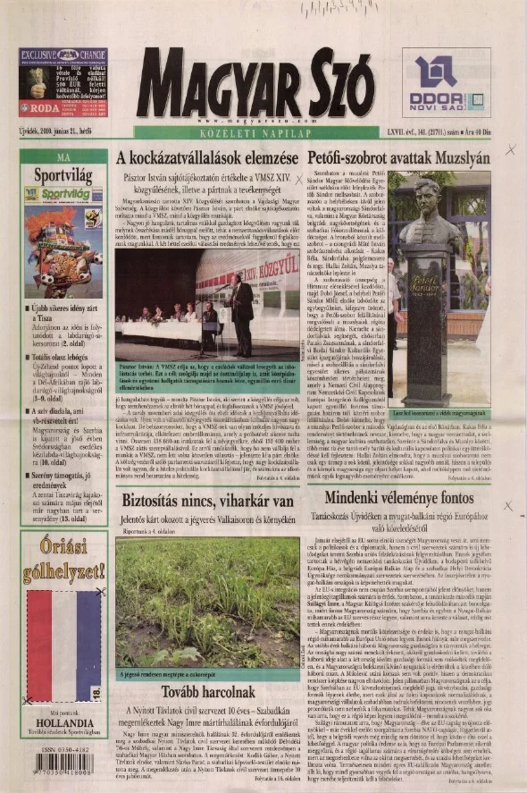 Magyar Szó, 67. évf. 2010. június 21. 141. sz. 1–16. oldal