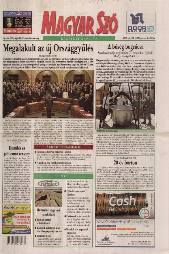 Magyar Szó, 67. évf. 2010. május 15. – 16. 110. sz. 1–52. oldal
