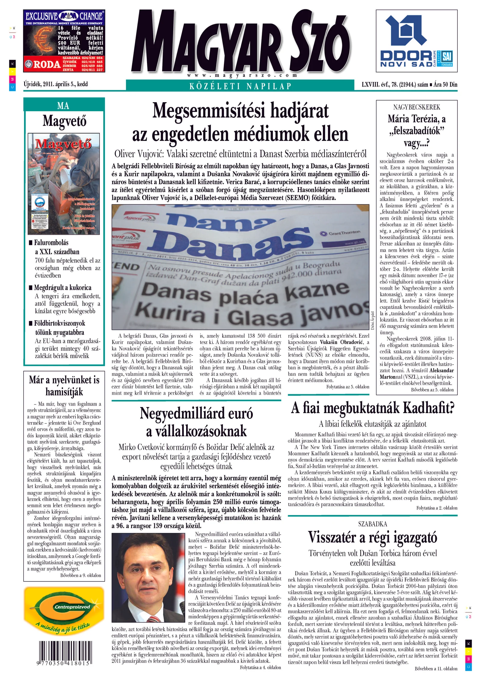 Magyar Szó, 68. évf. 2011. április 5. 78. sz. 1–20. oldal