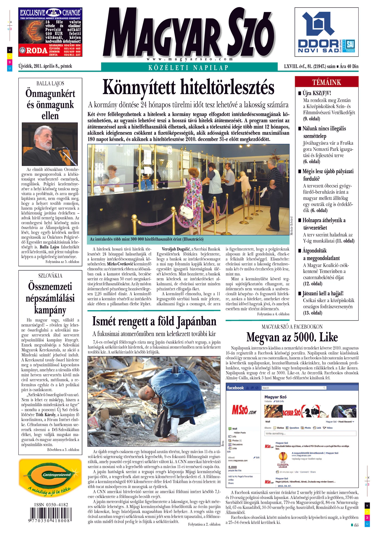 Magyar Szó, 68. évf. 2011. április 8. 81. sz. 1–20. oldal
