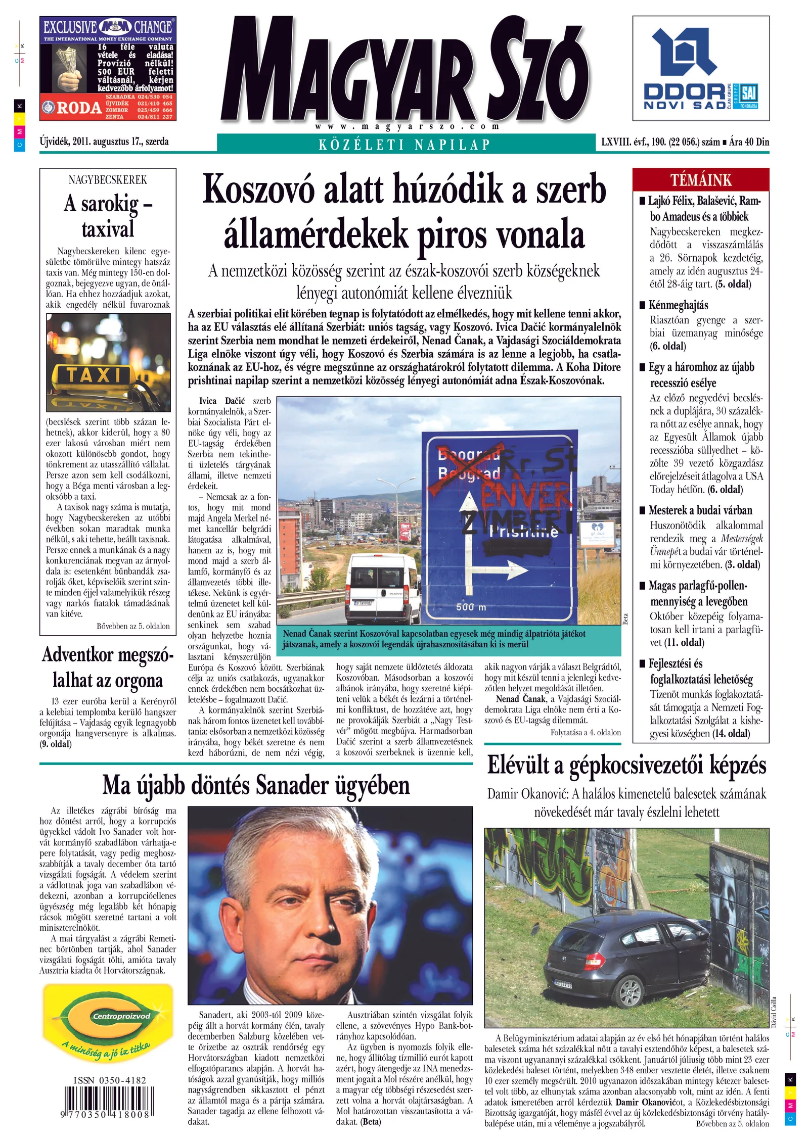 Magyar Szó, 68. évf. 2011. augusztus 17. 190. sz. 1–20. oldal