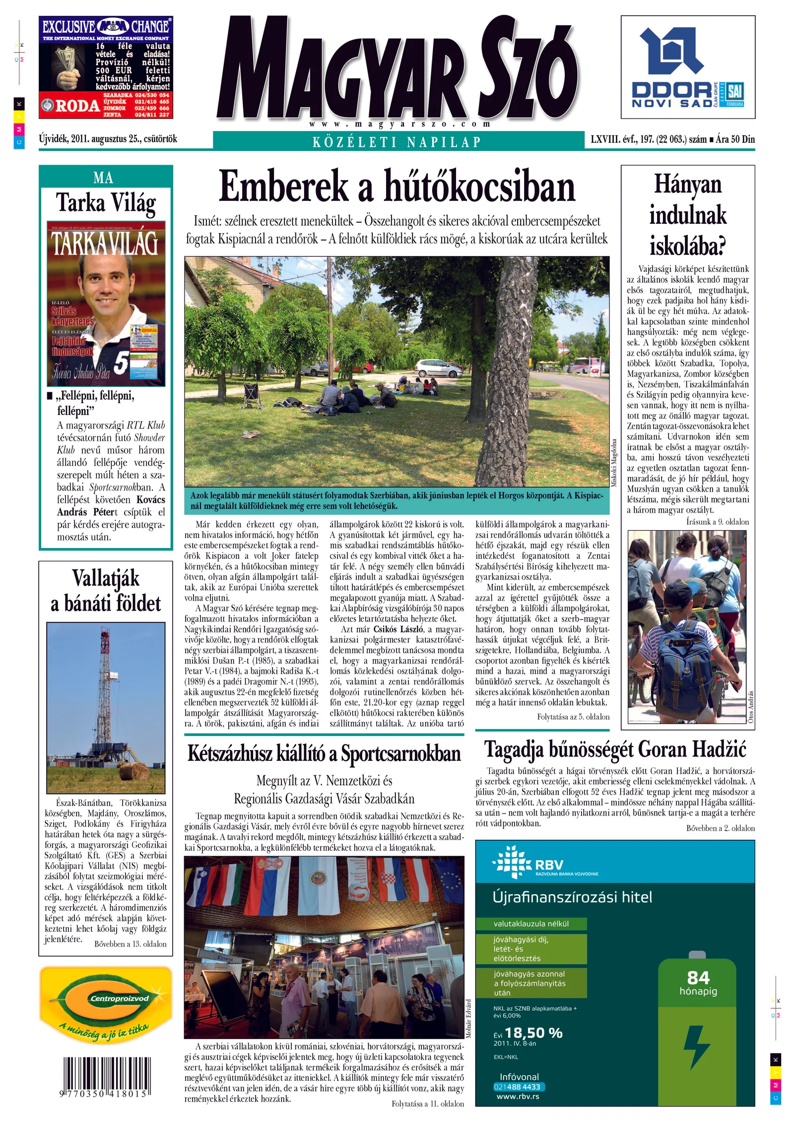 Magyar Szó, 68. évf. 2011. augusztus 25. 197. sz. 1–20. oldal