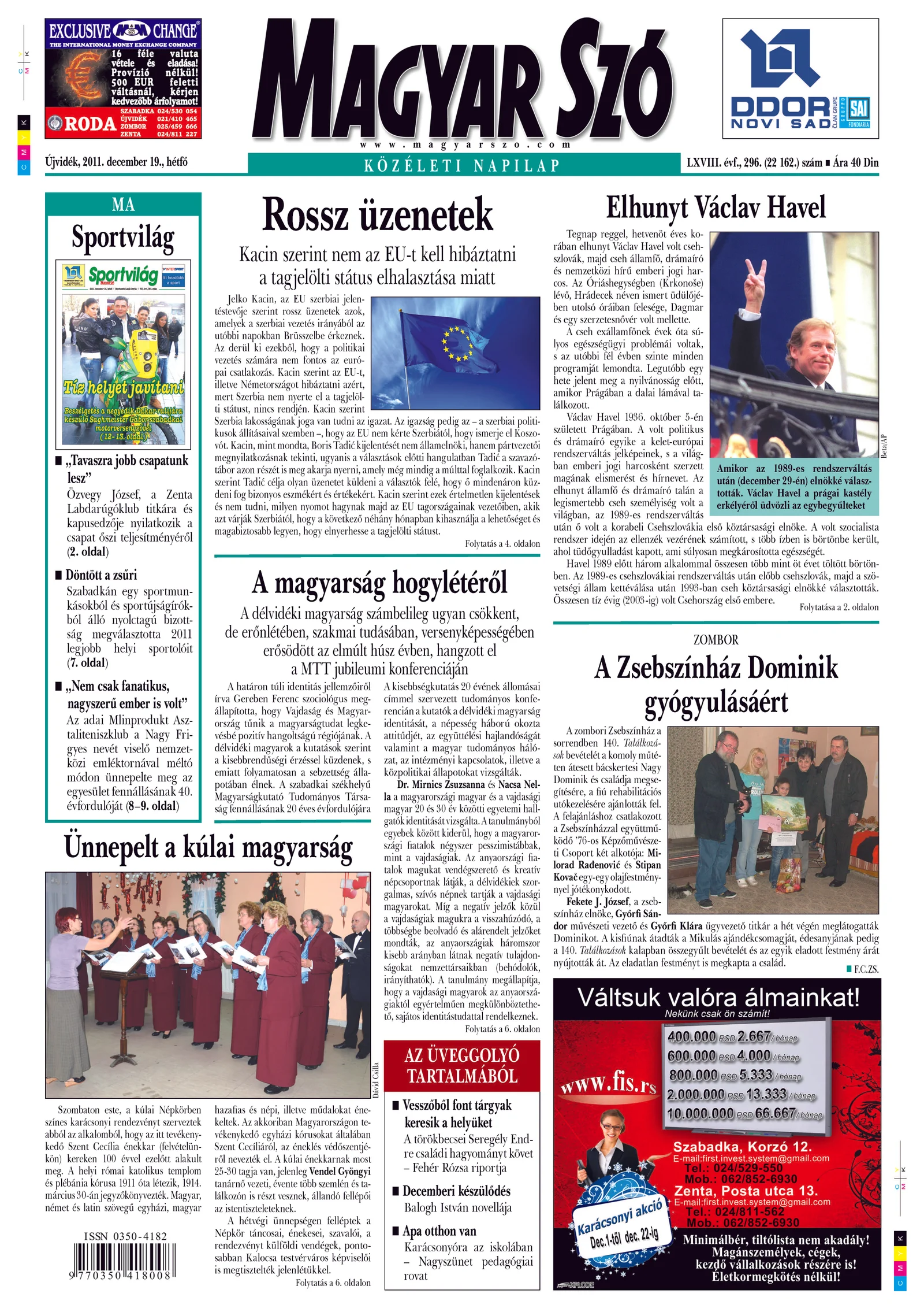 Magyar Szó, 68. évf. 2011. december 19. 296. sz. 1–16. oldal