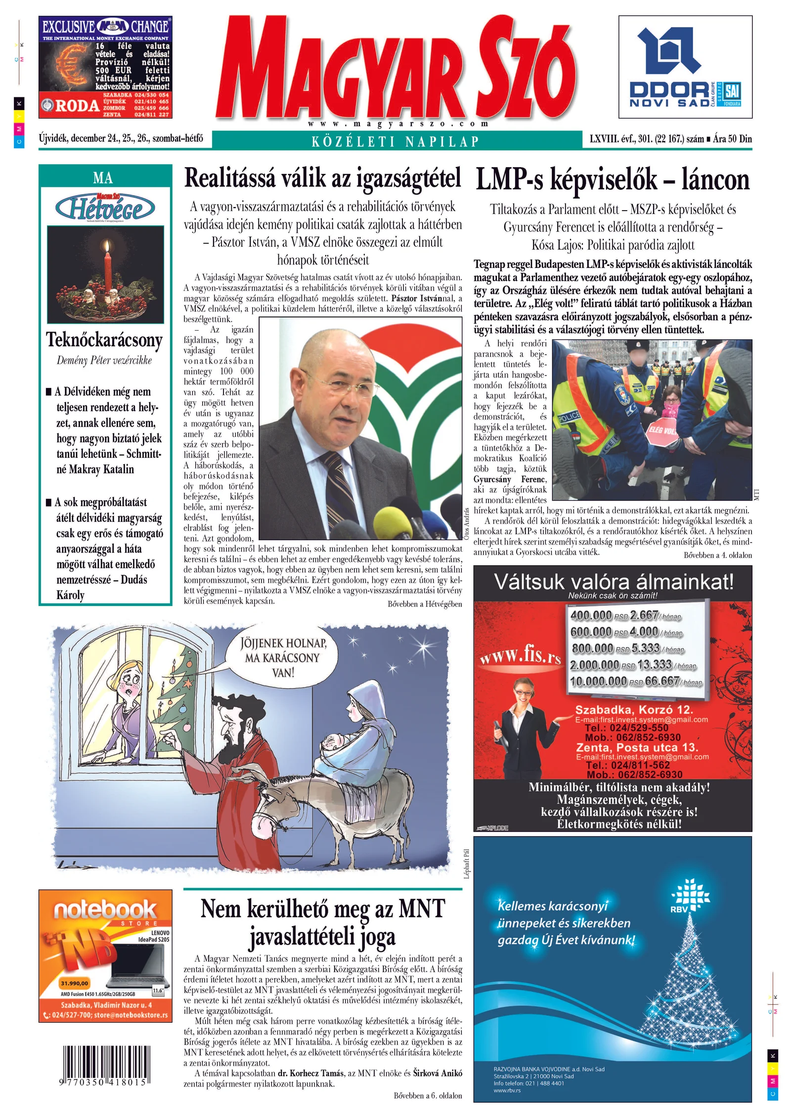 Magyar Szó, 68. évf. 2011. december 24. – 26. 301. sz.