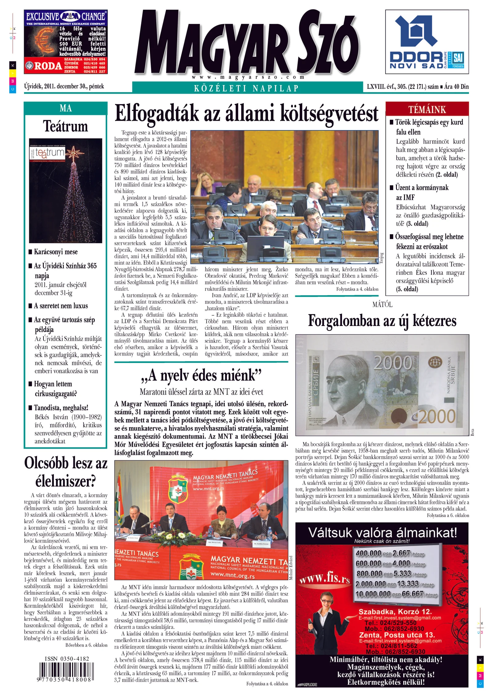 Magyar Szó, 68. évf. 2011. december 30. 305. sz. 1–20. oldal