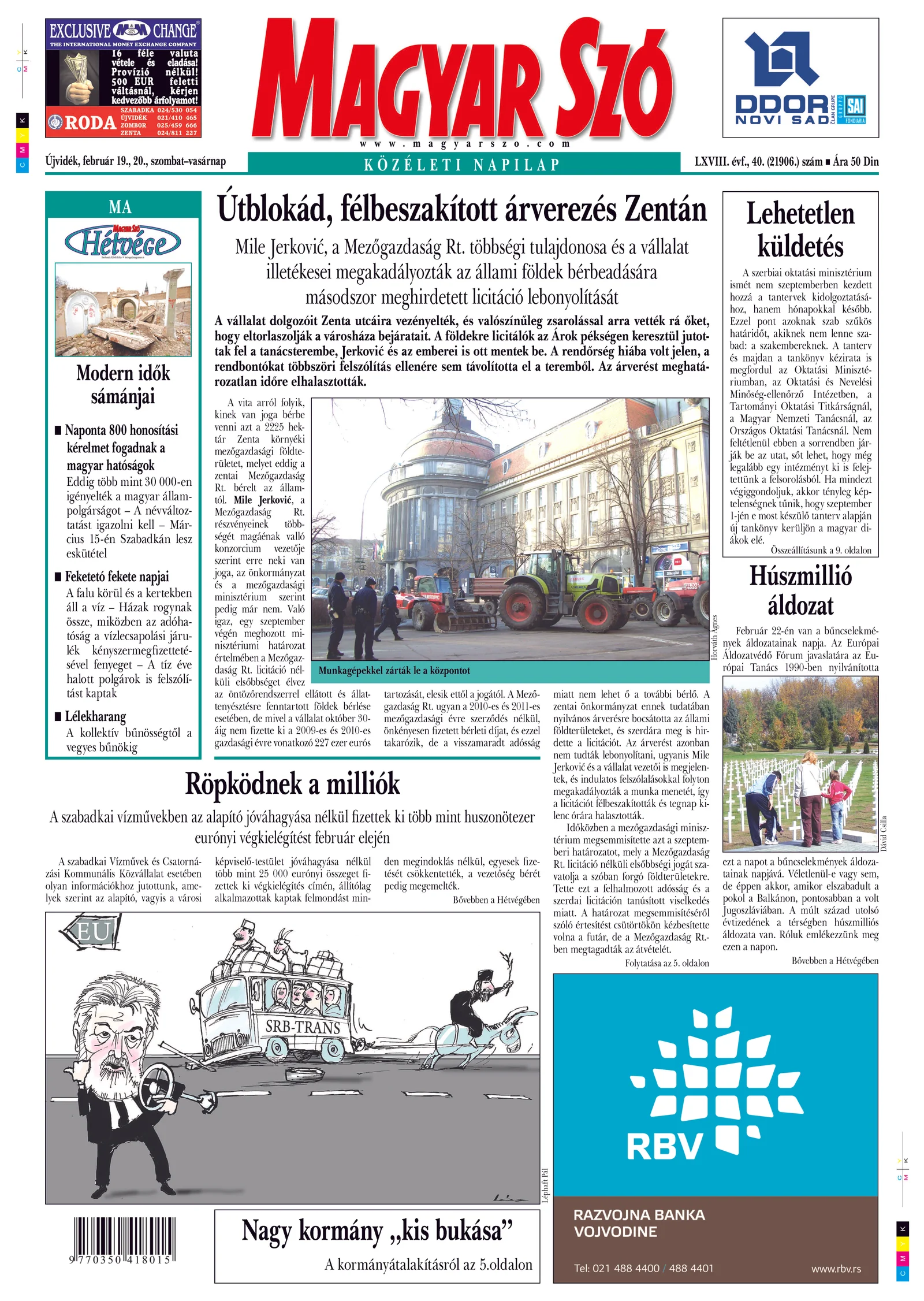 Magyar Szó, 68. évf. 2011. február 19. – 20. 50. sz. 1–48. oldal