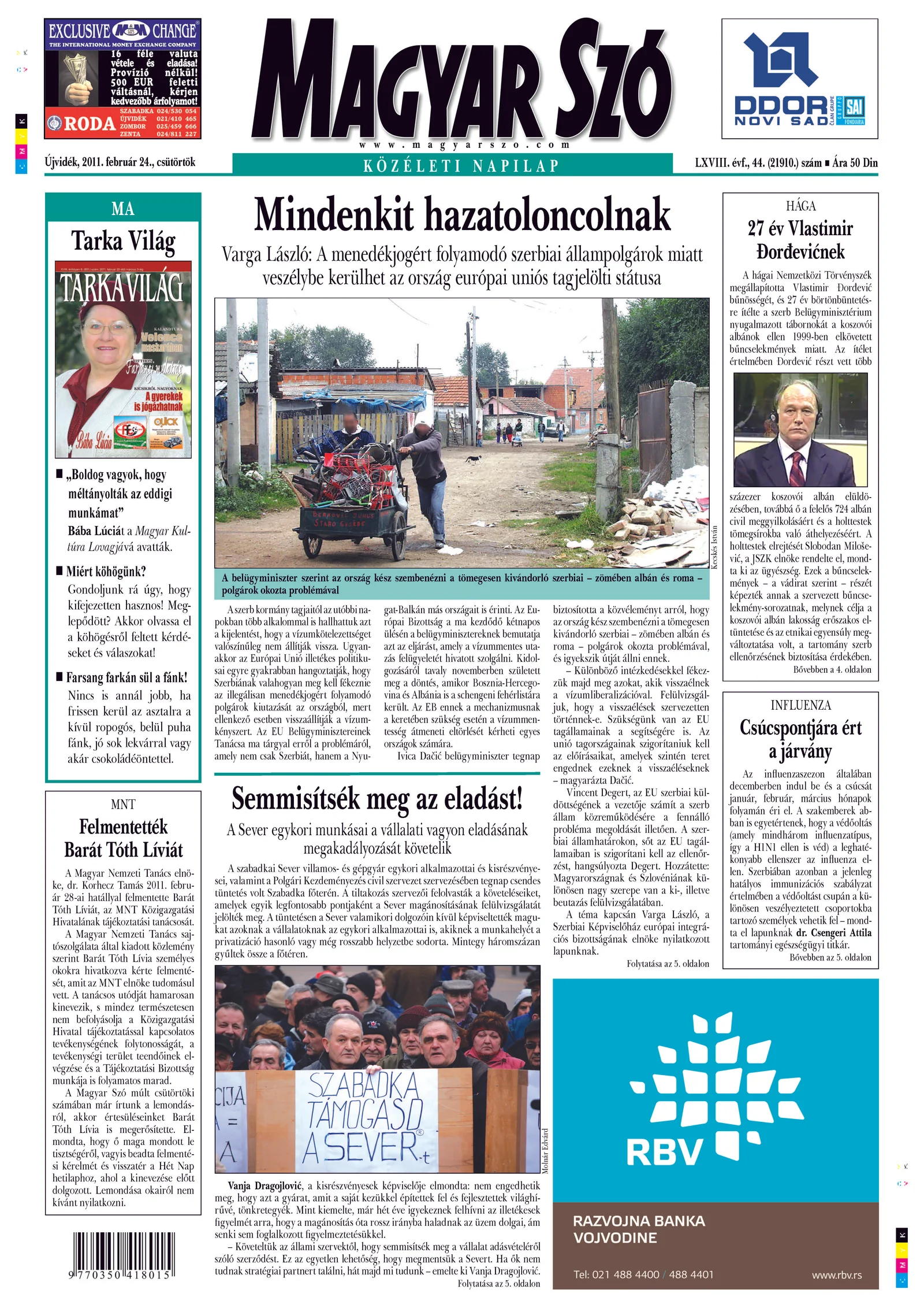 Magyar Szó, 68. évf. 2011. február 24. 44. sz. 1–20. oldal