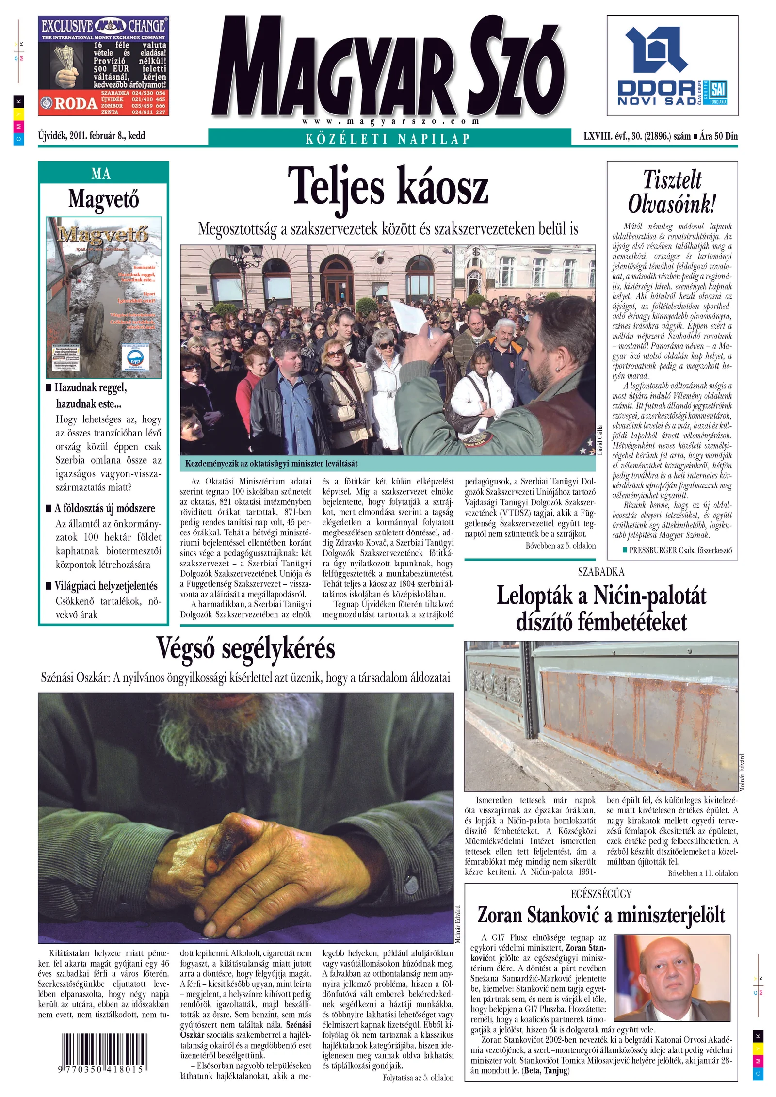 Magyar Szó, 68. évf. 2011. február 8. 30. sz. 1–20. oldal