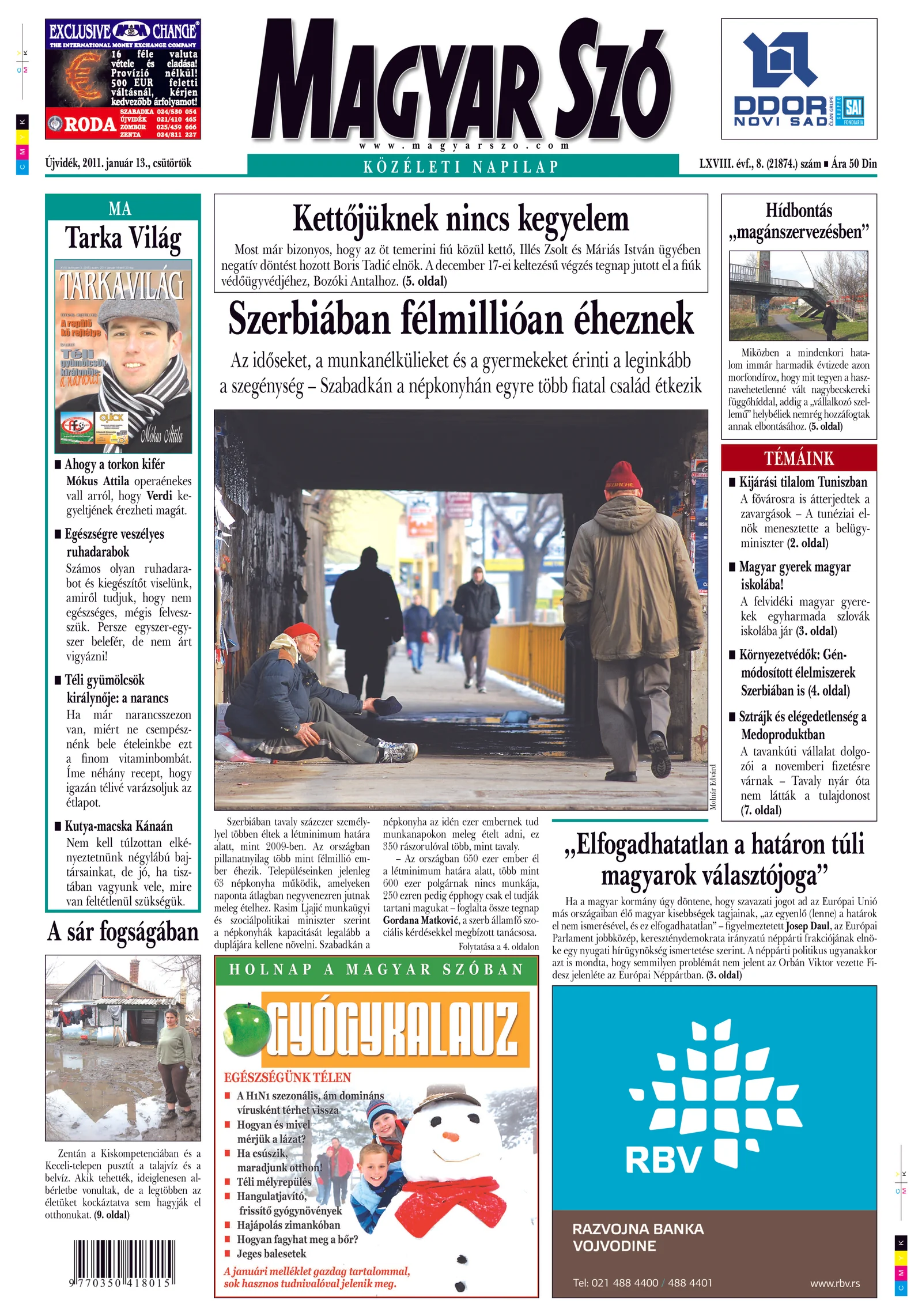 Magyar Szó, 68. évf. 2011. január 13. 8. sz. 1–20. oldal