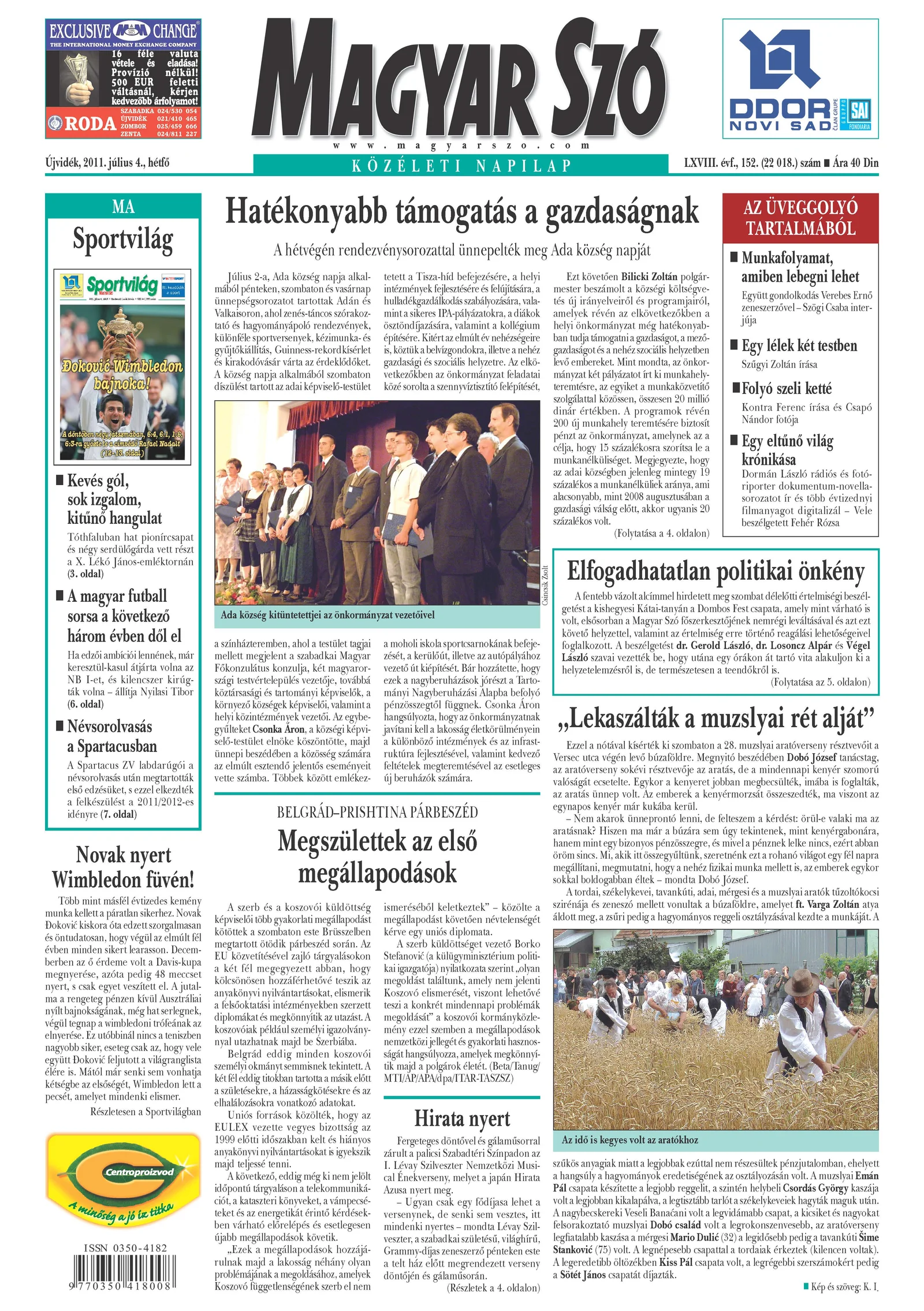 Magyar Szó, 68. évf. 2011. július 4. 152. sz. 1–16. oldal