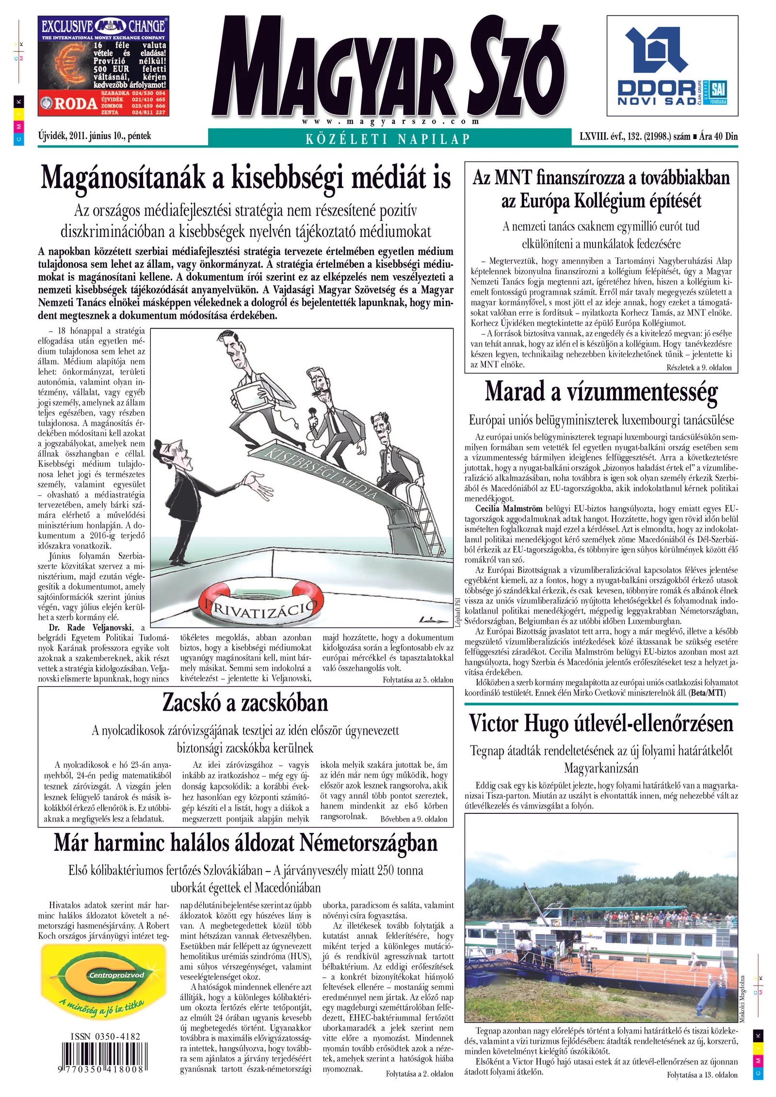 Magyar Szó, 68. évf. 2011. június 10. 132. sz. 1–20. oldal