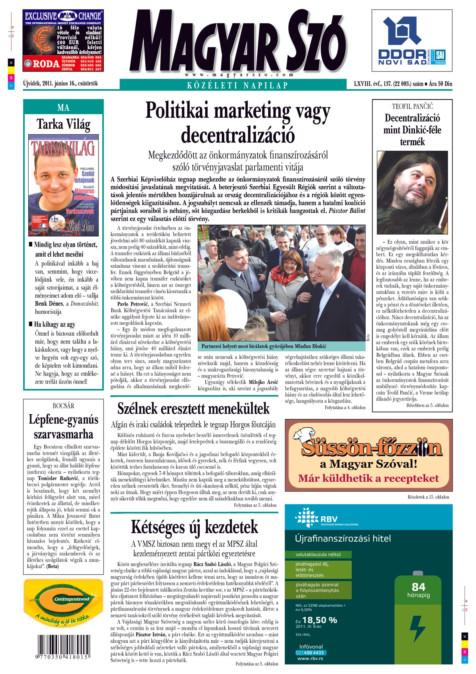 Magyar Szó, 68. évf. 2011. június 16. 137. sz. 1–20. oldal