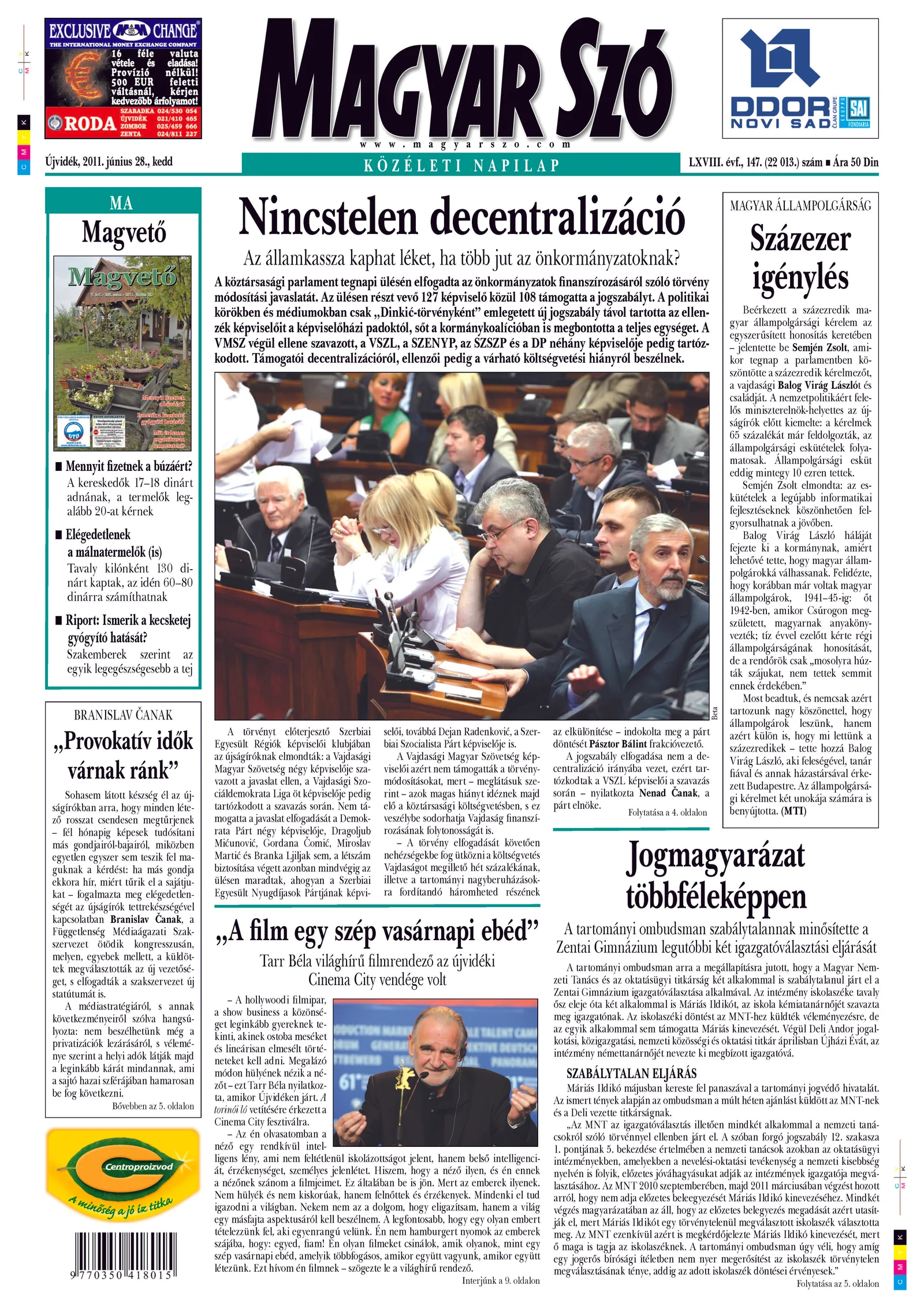 Magyar Szó, 68. évf. 2011. június 28. 147. sz. 1–20. oldal