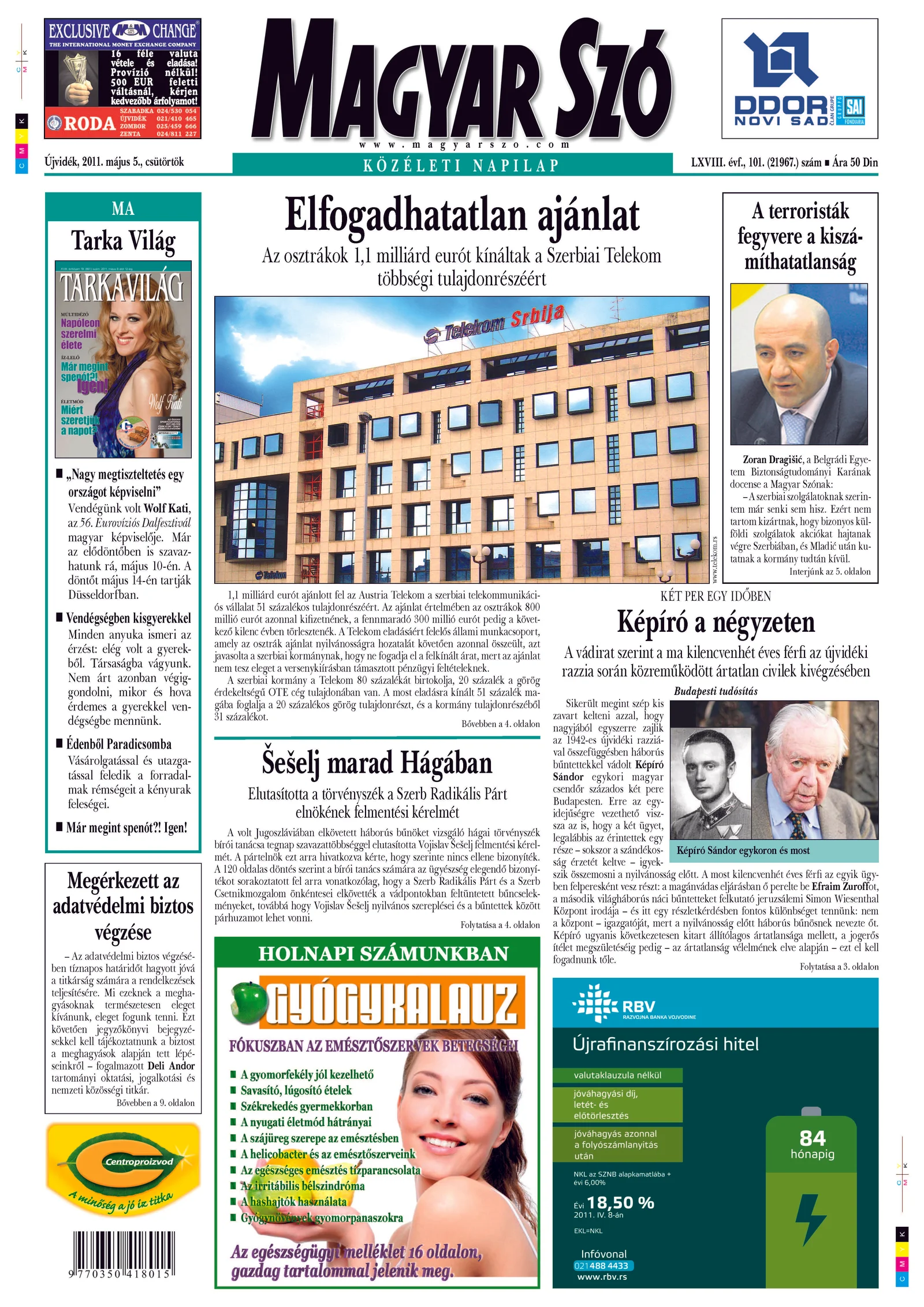 Magyar Szó, 68. évf. 2011. május 5. 101. sz. 1–20. oldal