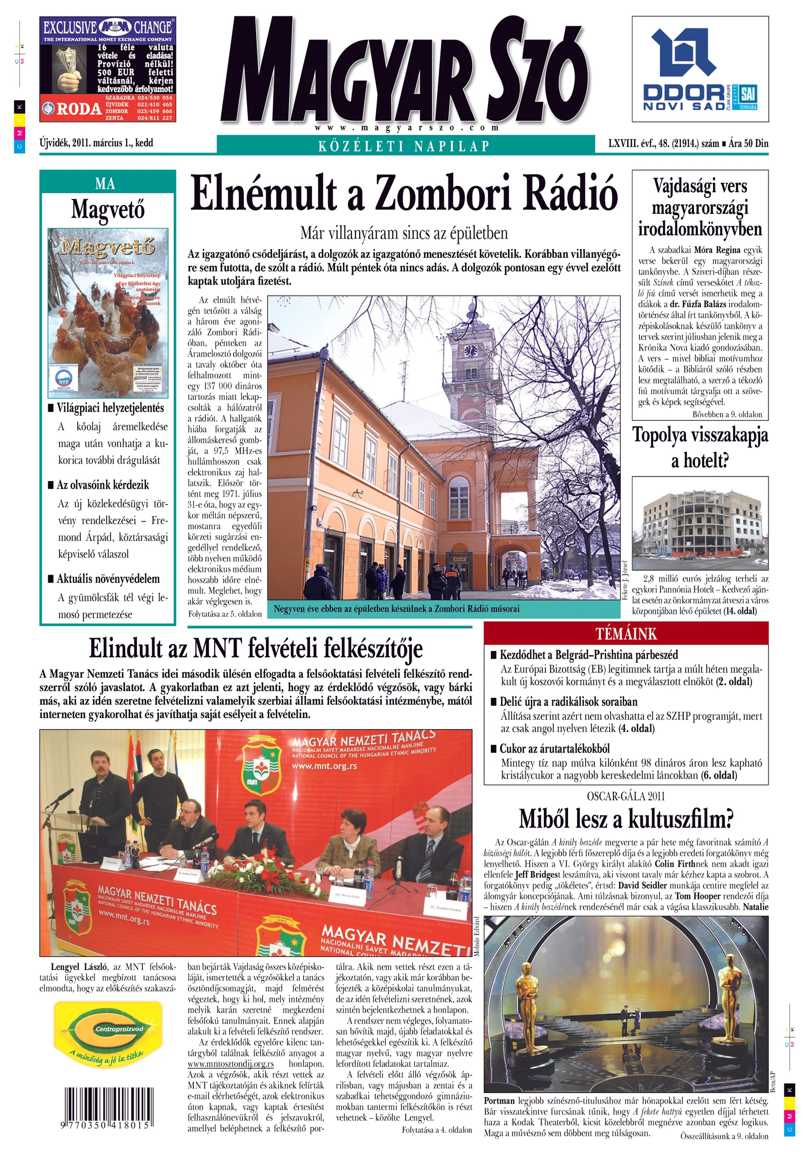 Magyar Szó, 68. évf. 2011. március 1. 48. sz. 1–20. oldal