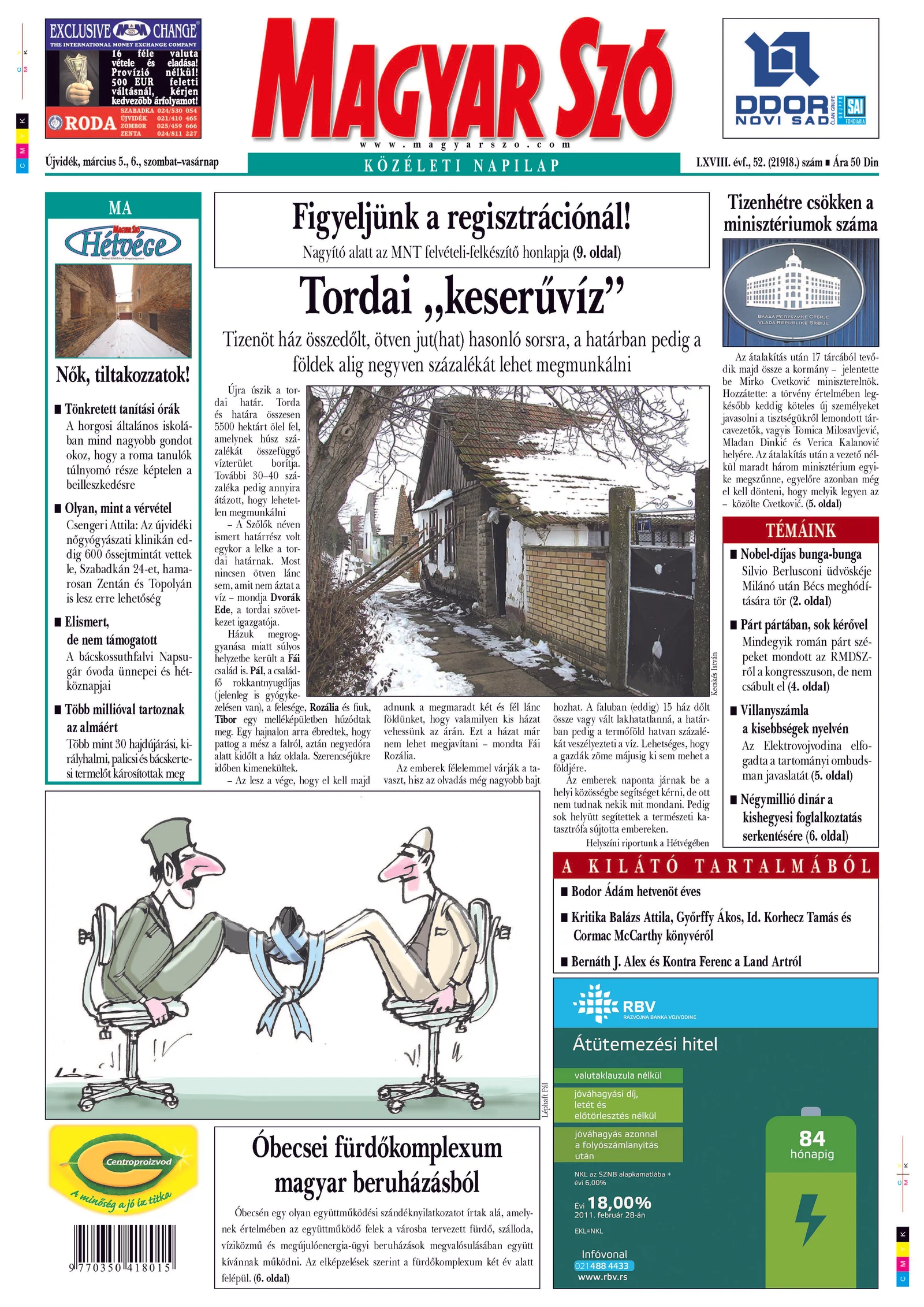Magyar Szó, 68. évf. 2011. március 5. – 6. 52. sz. 1–48. oldal