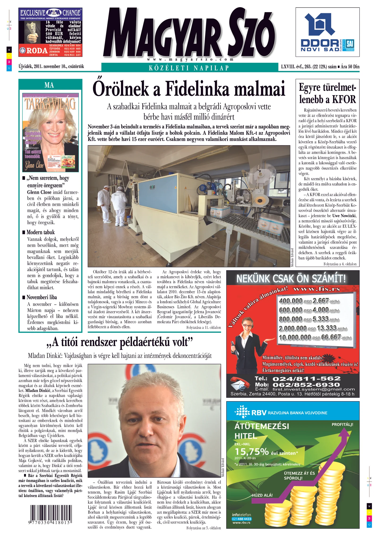 Magyar Szó, 68. évf. 2011. november 10. 263. sz. 1–20. oldal