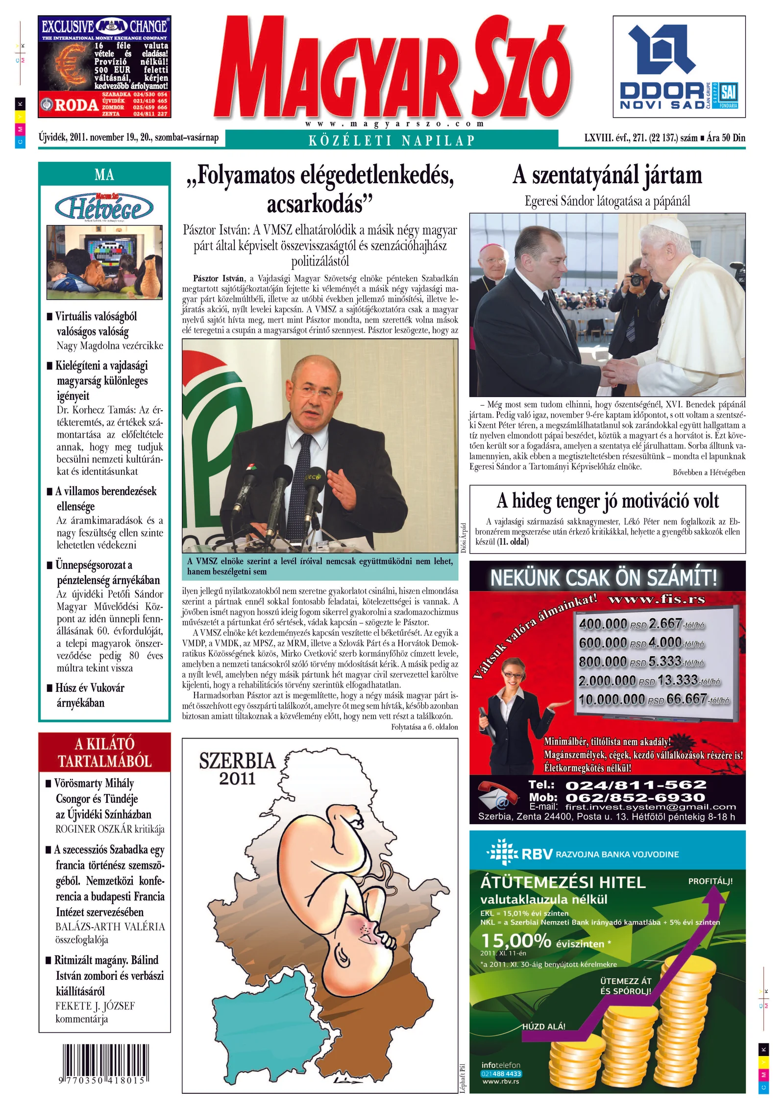 Magyar Szó, 68. évf. 2011. november 19. – 20. 271. sz. 1–48. oldal