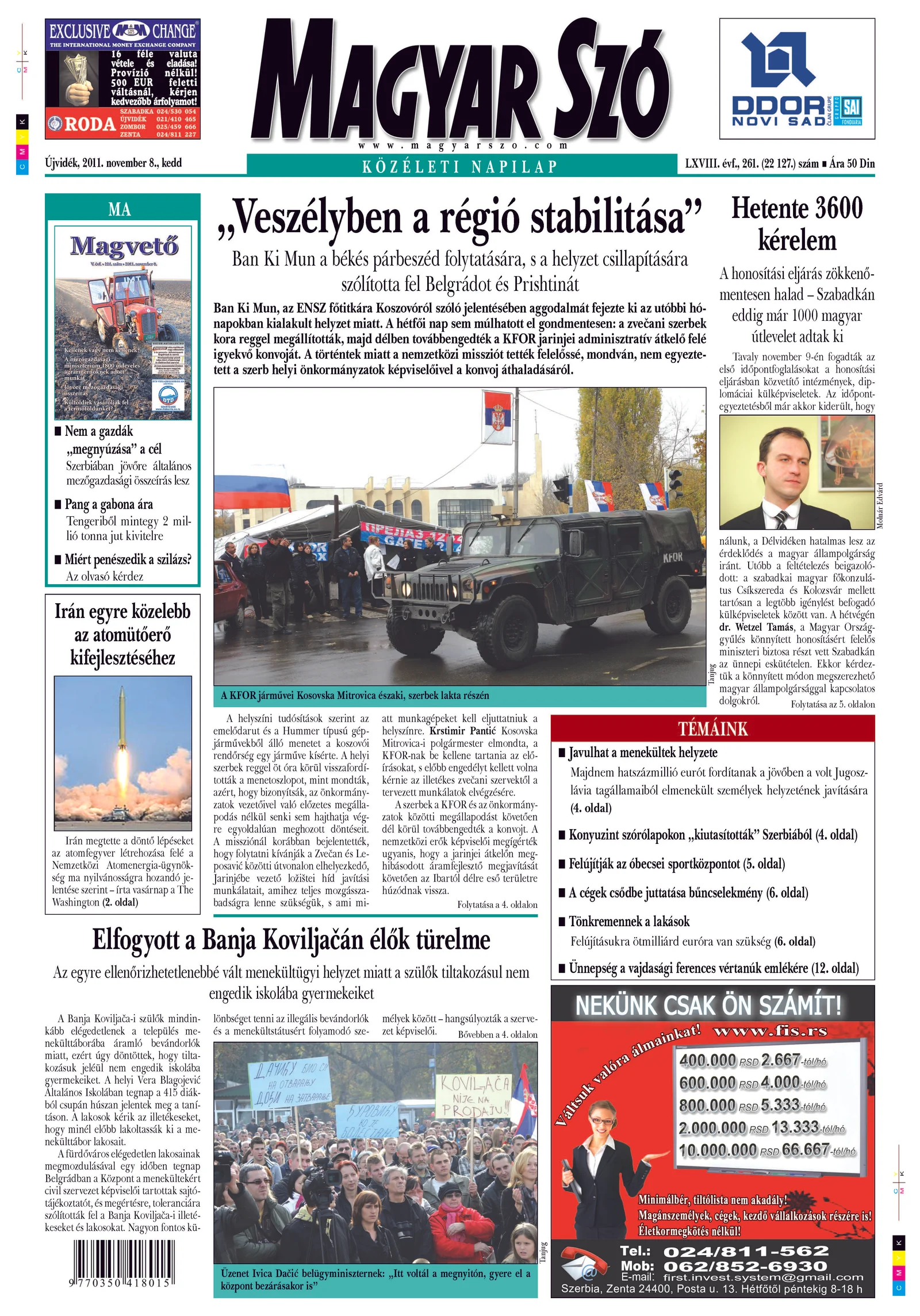 Magyar Szó, 68. évf. 2011. november 8. 261. sz. 1–20. oldal