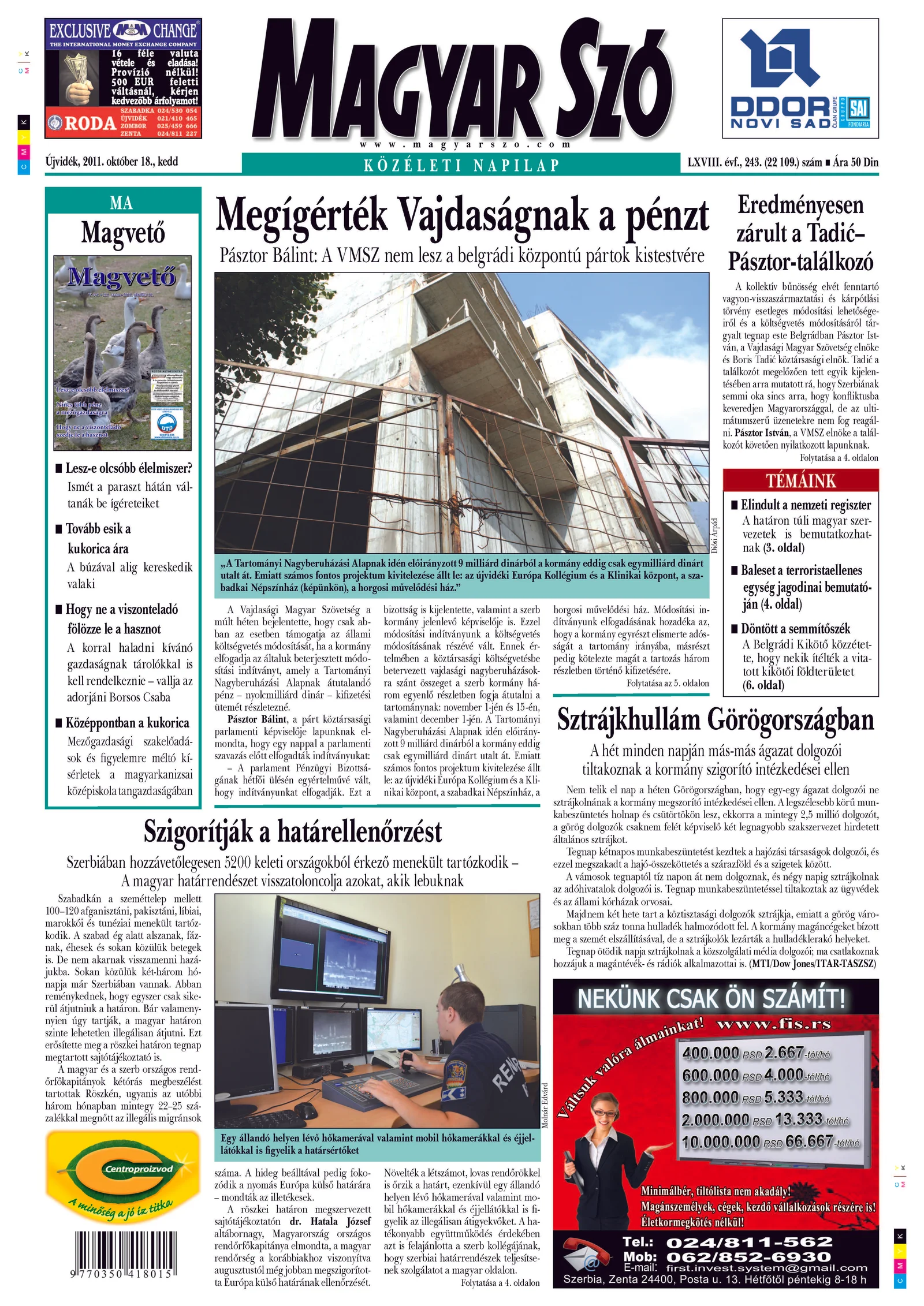 Magyar Szó, 68. évf. 2011. október 18. 243. sz. 1–20. oldal
