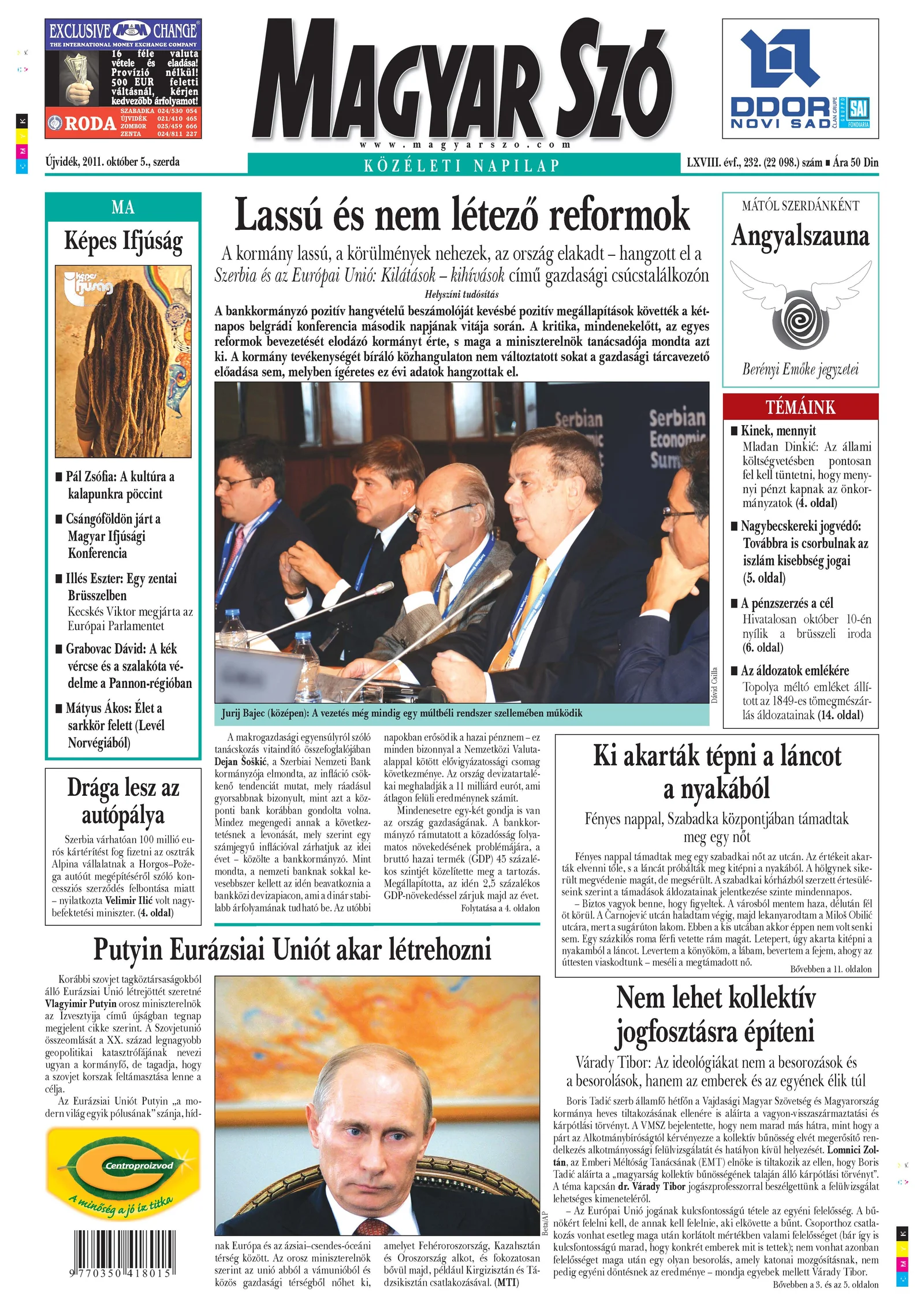 Magyar Szó, 68. évf. 2011. október 5. 232. sz. 1–20. oldal