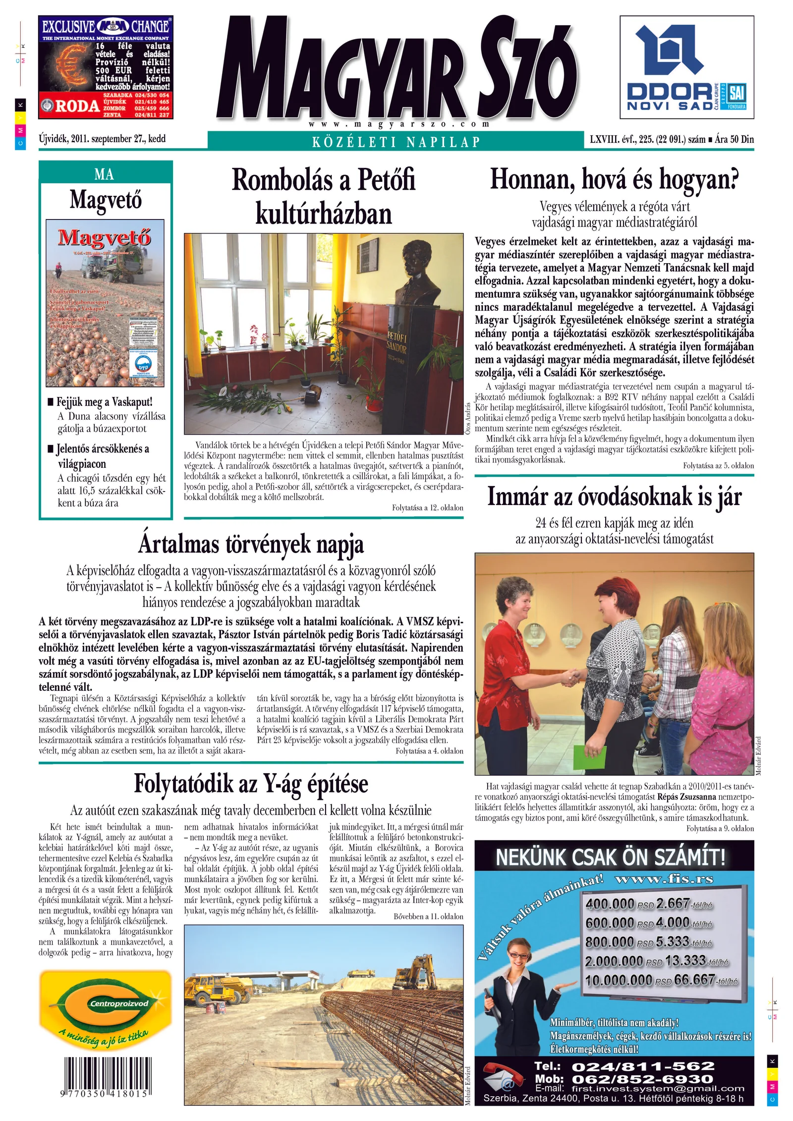 Magyar Szó, 68. évf. 2011. szeptember 27. 225. sz. 1–20. oldal