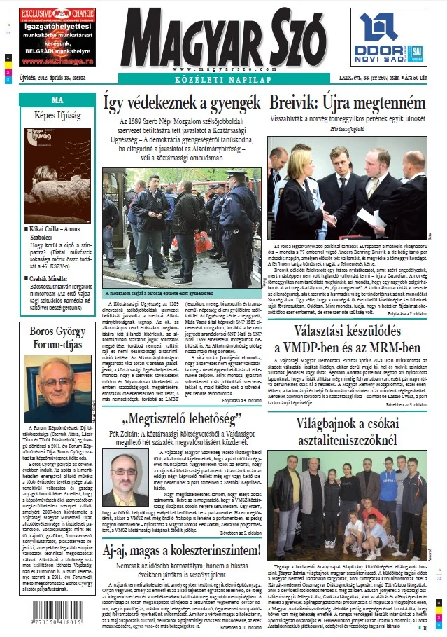 Magyar Szó, 69. évf. 2012. április 18. 88. sz. 1–20. oldal