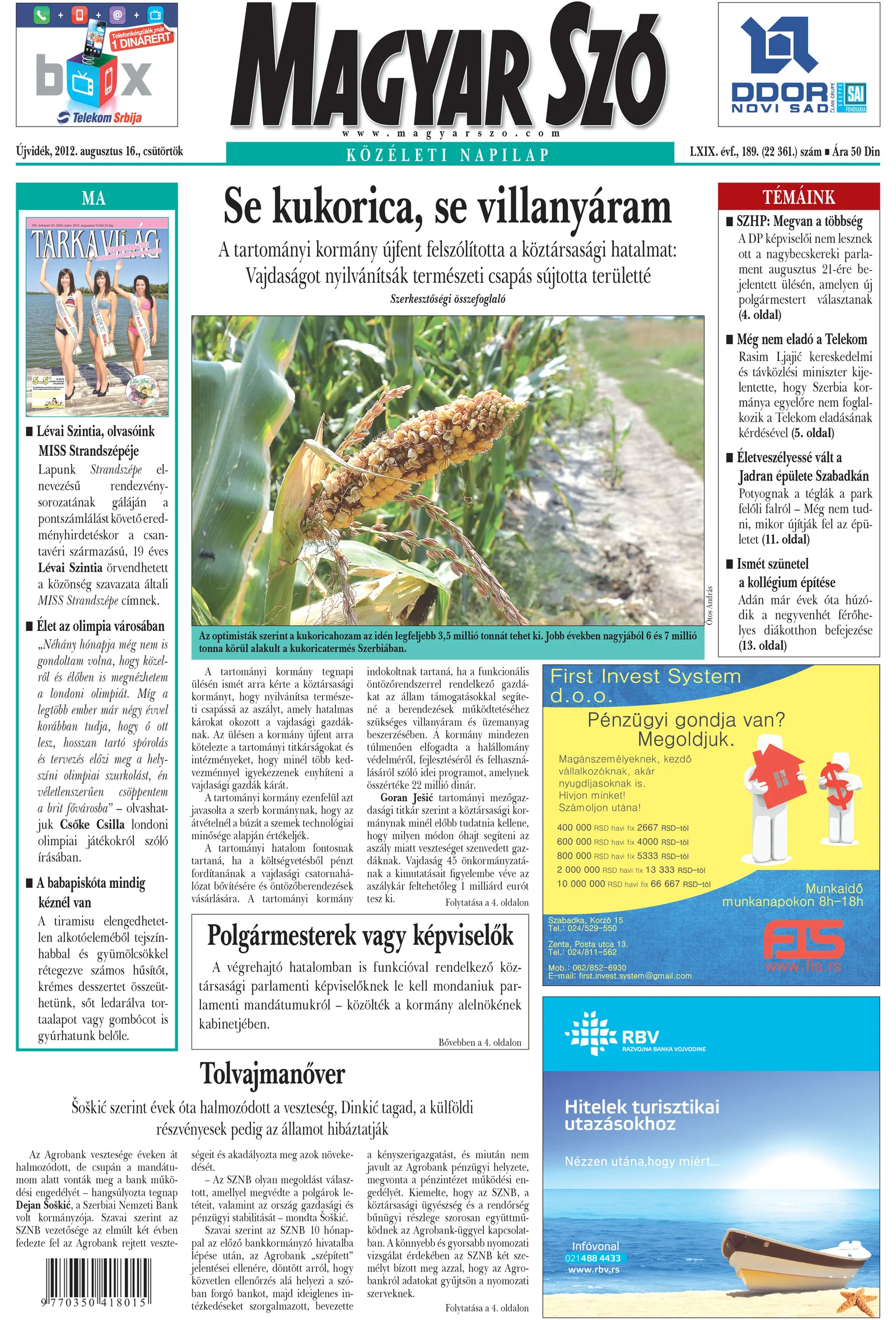 Magyar Szó, 69. évf. 2012. augusztus 16. 189. sz. 1–20. oldal