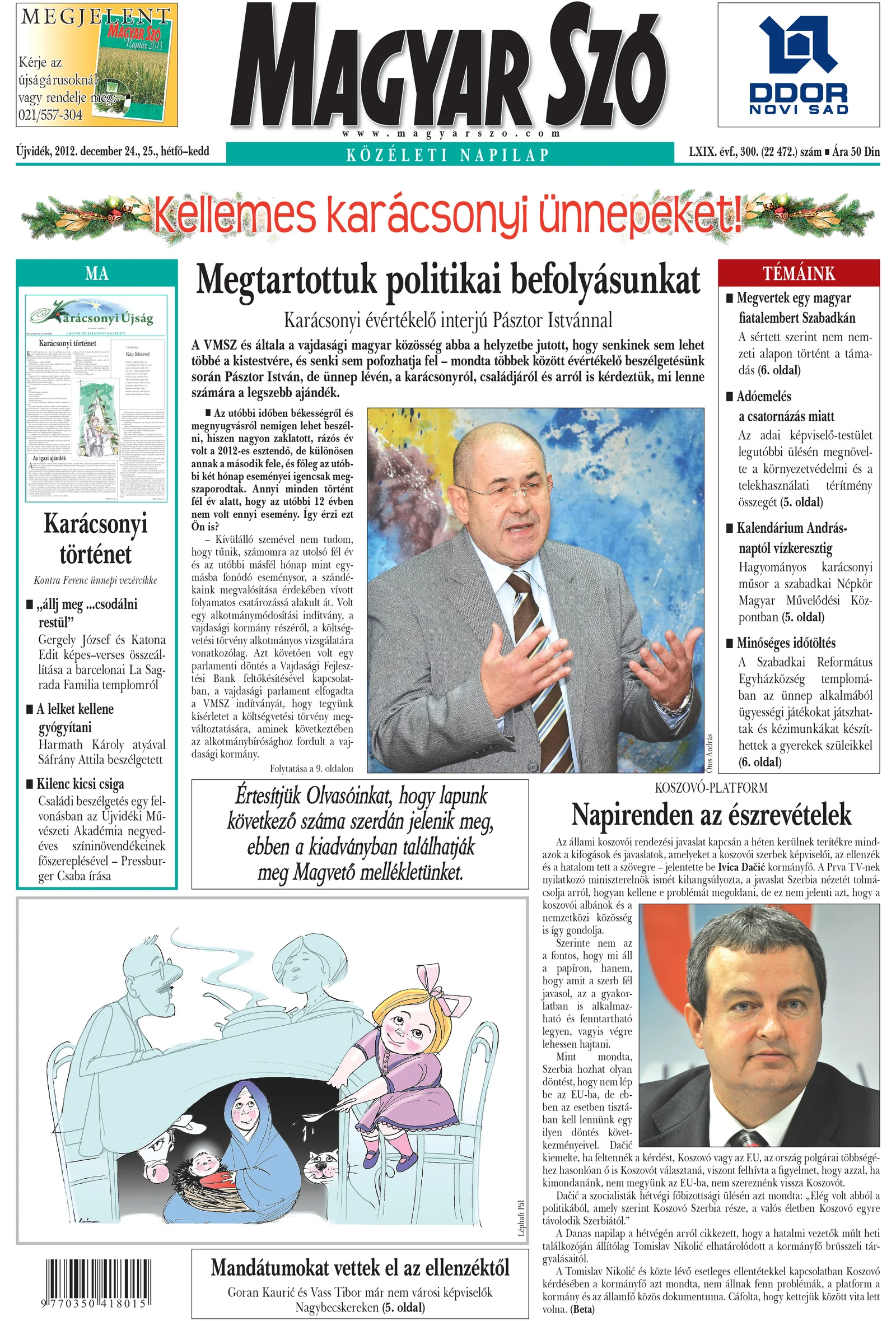 Magyar Szó, 69. évf. 2012. december 24. – 25. 300. sz. 1–36. oldal