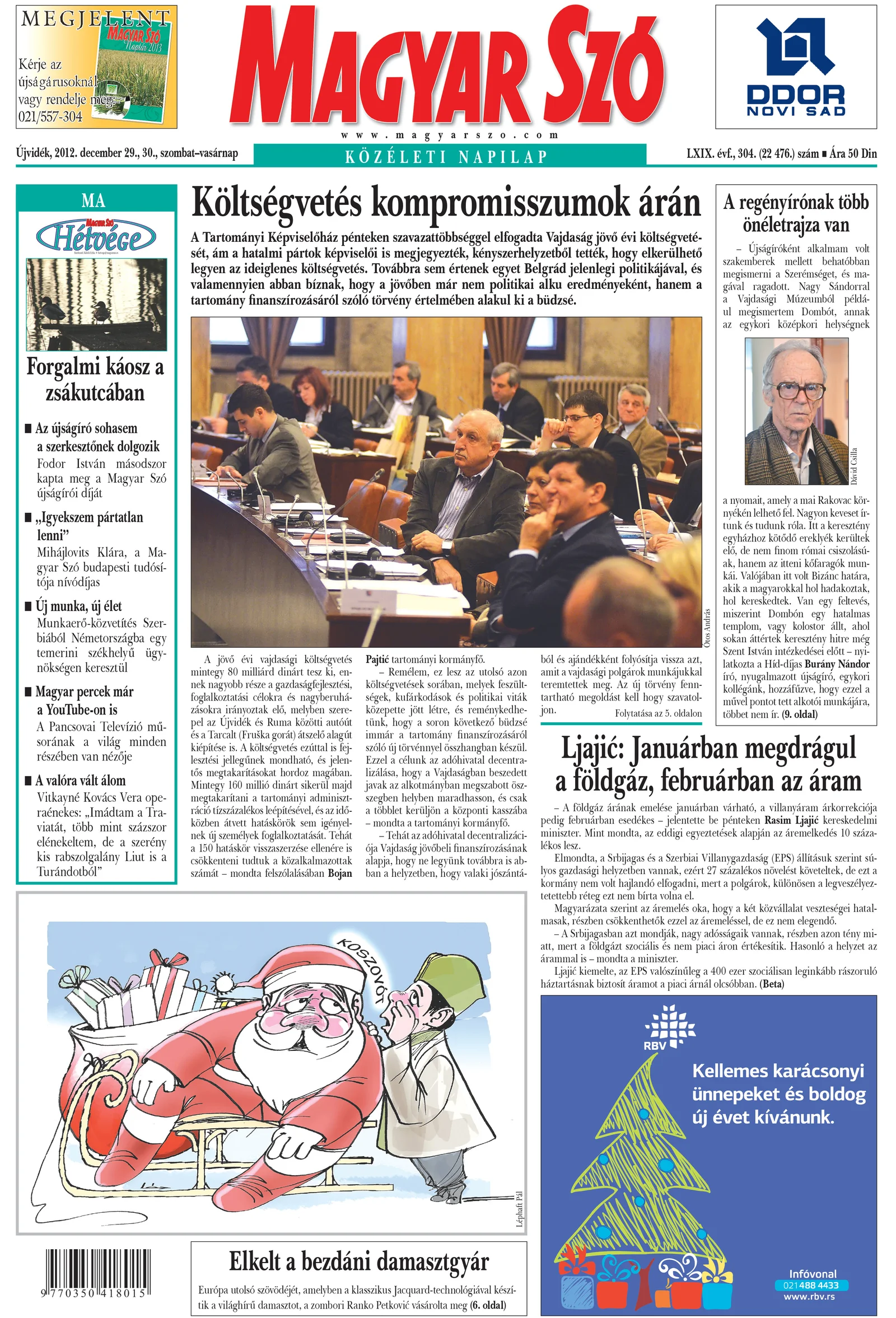 Magyar Szó, 69. évf. 2012. december 29. – 30. 304. sz. 1–44. oldal