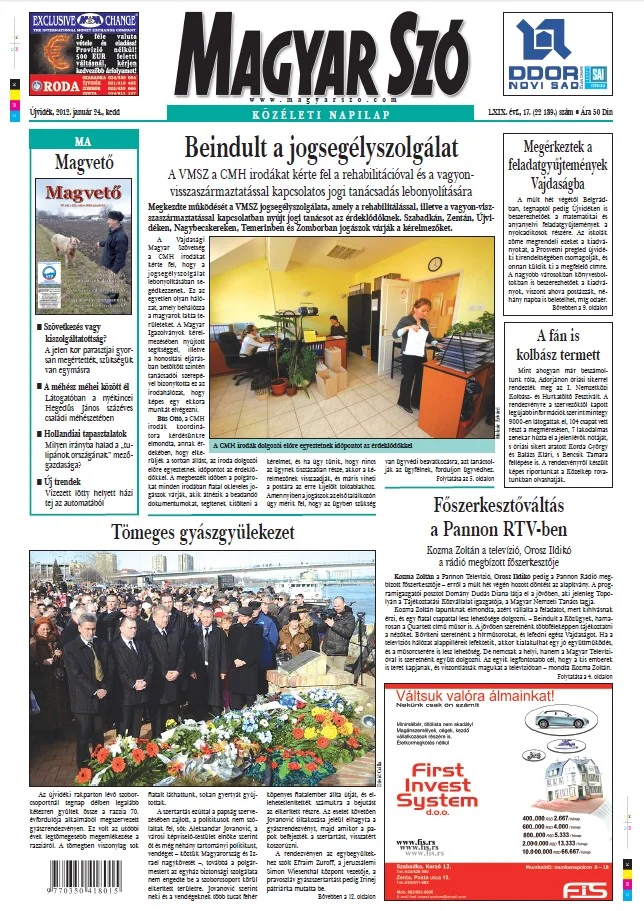 Magyar Szó, 69. évf. 2012. január 24. 17. sz. 1–20. oldal